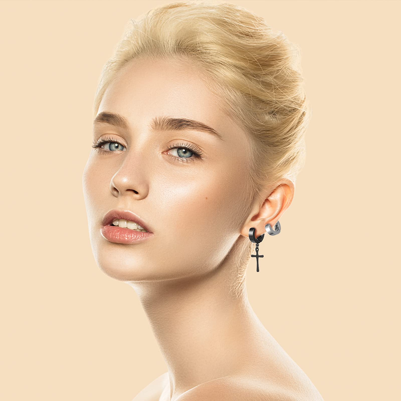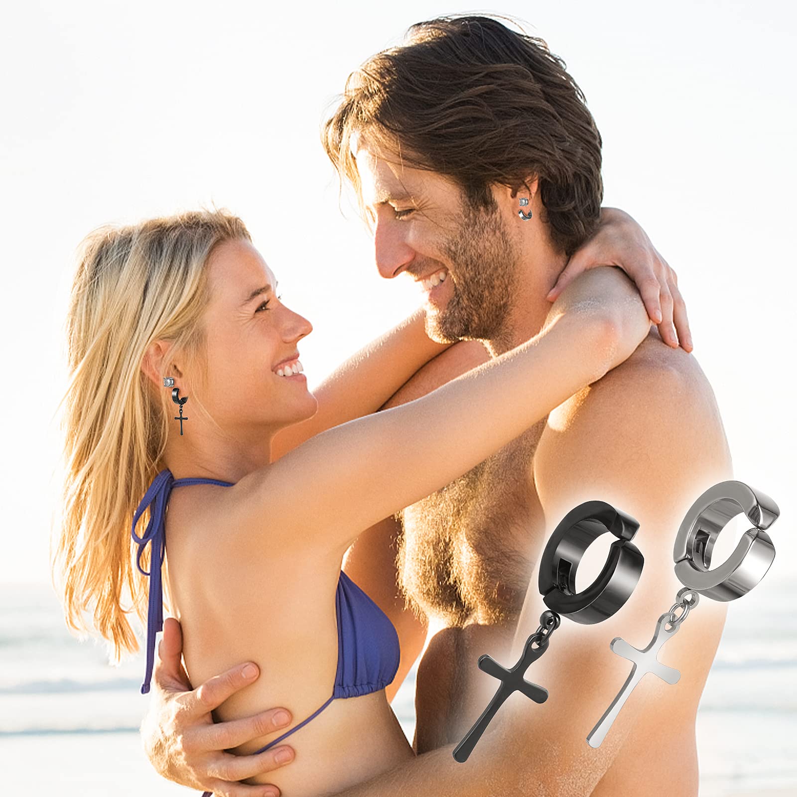 ASTER 10 Pairs Magnetic Stud Earrings Stainless Steel Magnetic Earrings Non Piercing Cross Fake Earrings, Clip on Earring Magnet Earring for Men,Women,Kids,Girls(4 Styles), 10 pairs magnetic earrings, Stainless Steel