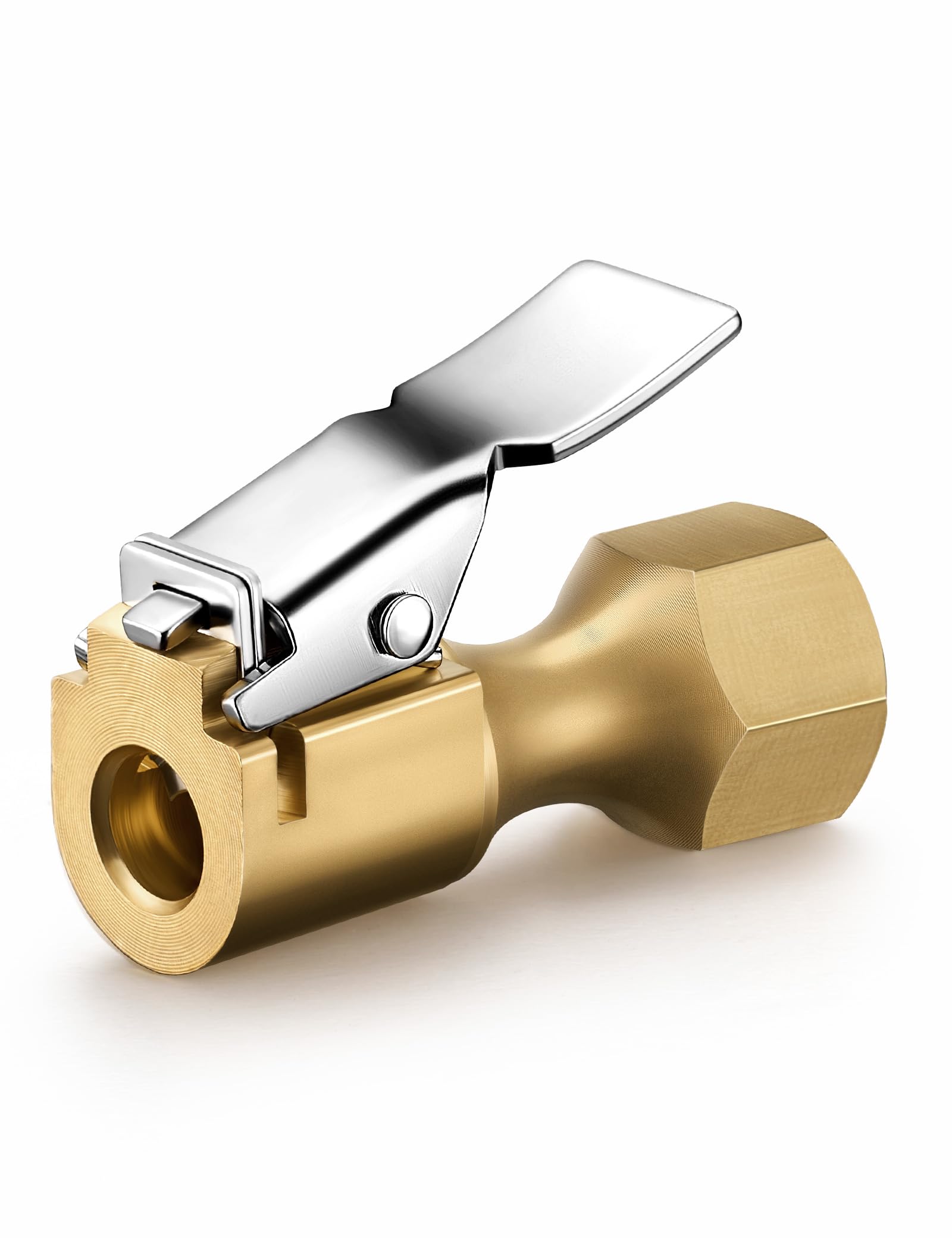 • HEAVY DUTY STRAIGHT TIP makes filling tire hassle-free; the locking clip keeps the chuck attached to the valve stem during inflation