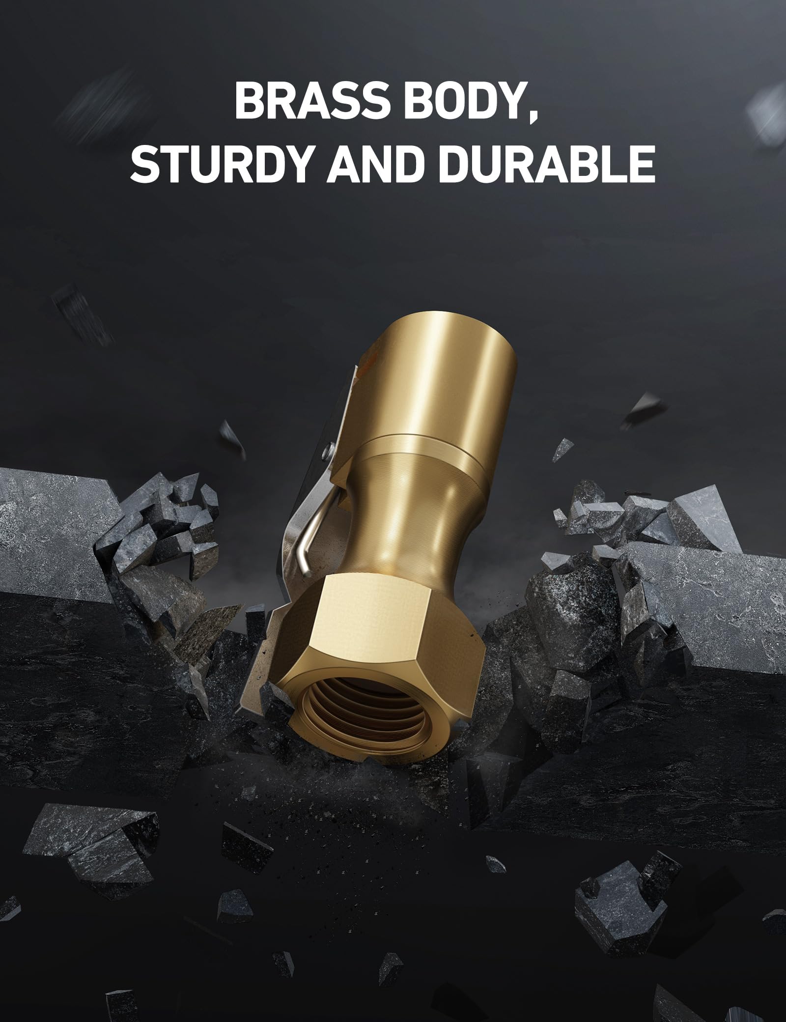 • 250 PSI RATED BRASS COMPONENTS are designed for heavy-duty use with tire inflators and gauges
