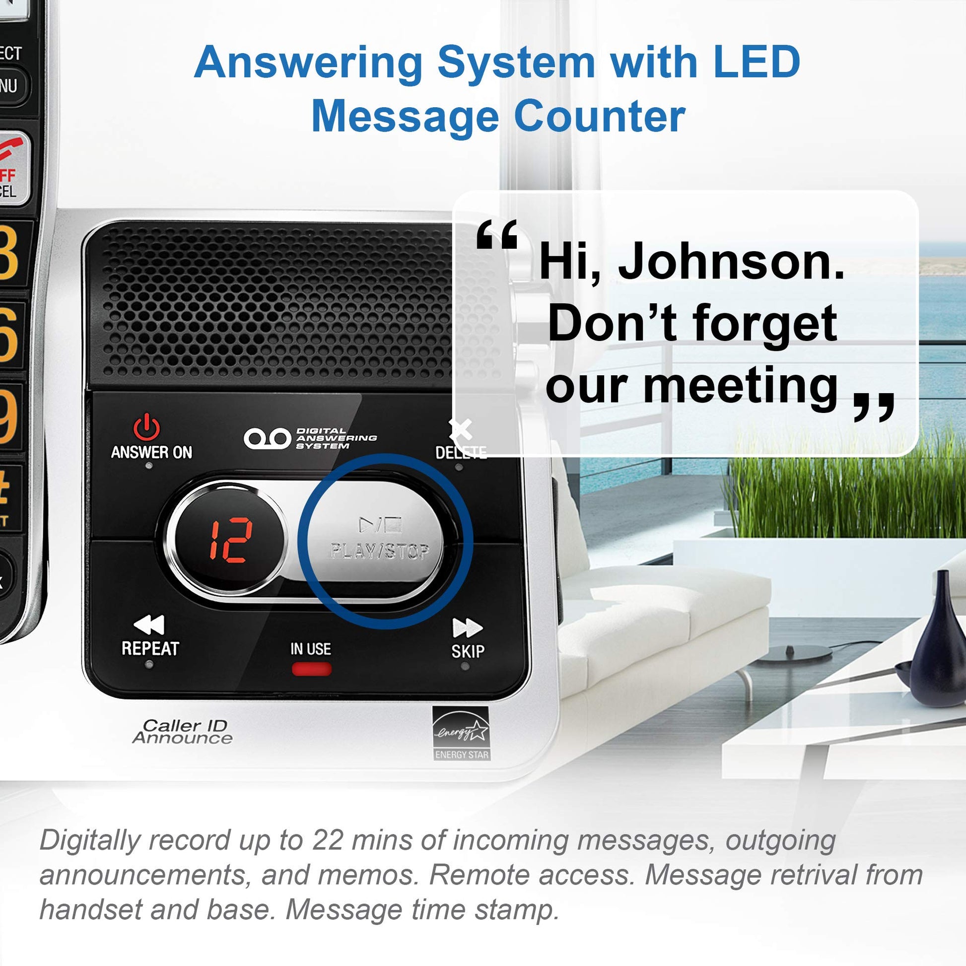 • [ANSWERING SYSTEM] This reliable cordless system includes a digital answering machine that can record up to 22 minutes of incoming messages, outgoing announcements and memos, and a voice-guide for easier set up.