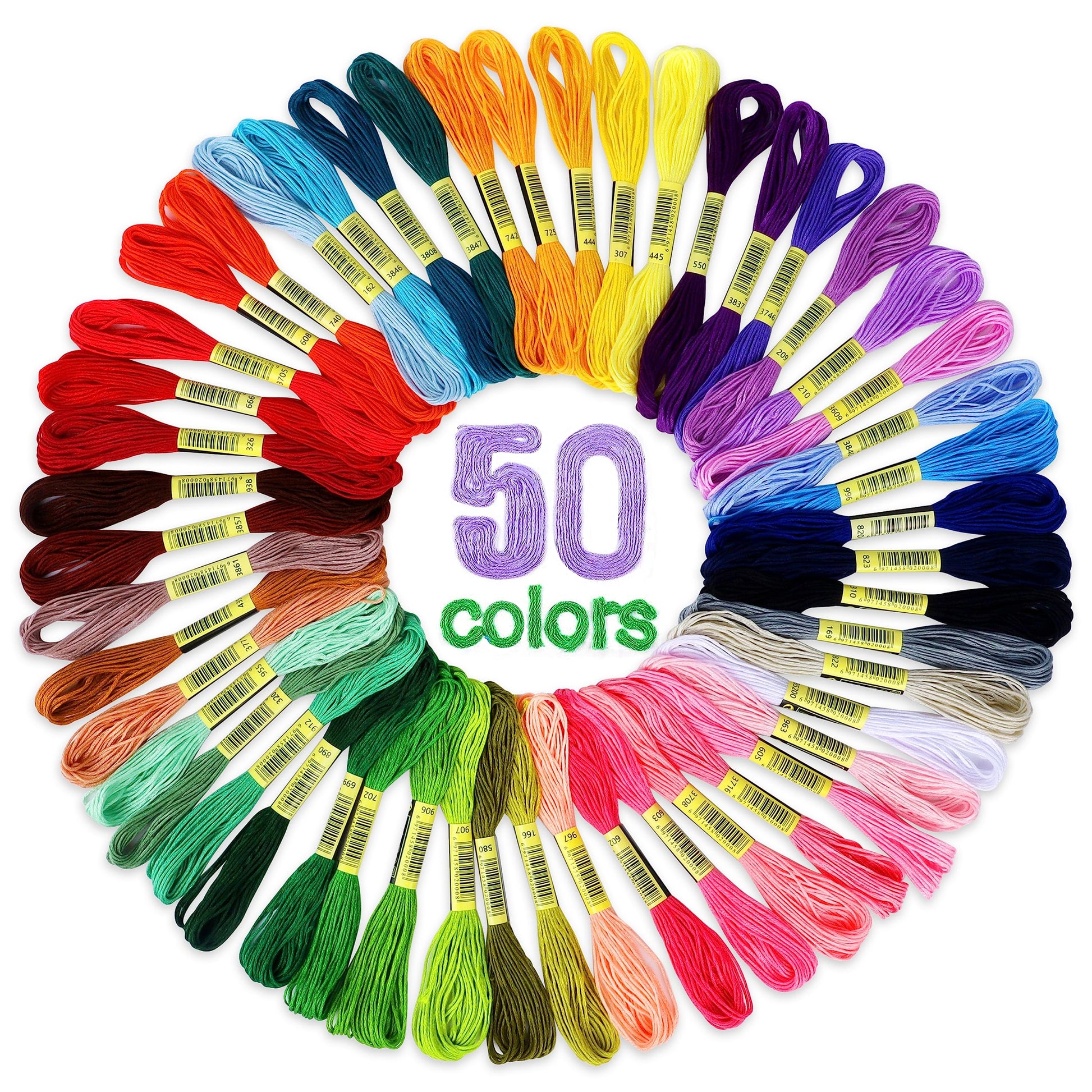 • 50 BEAUTIFUL RAINBOW COLORS --- 50 various vivid colors offers a wide range of color choices for your crafts, can easily rich your imagination. Each skein is 8 meters long and includes 6 strands, enough for any project.