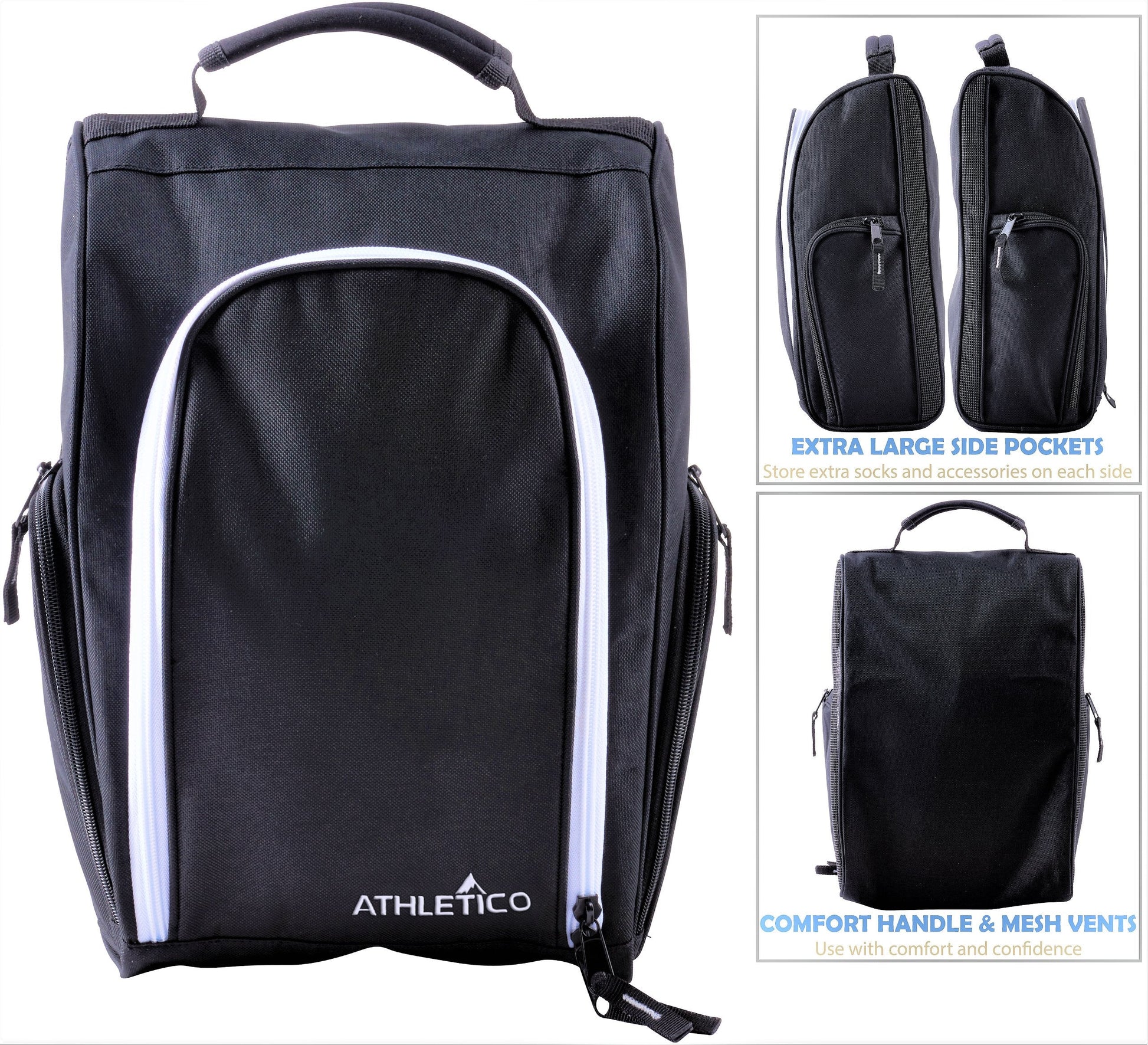 Athletico Golf Shoe Bag - Zippered Shoe Carrier Bags With Ventilation & Outside Pocket for Socks, Tees, etc. Perfect Storage (Black)
