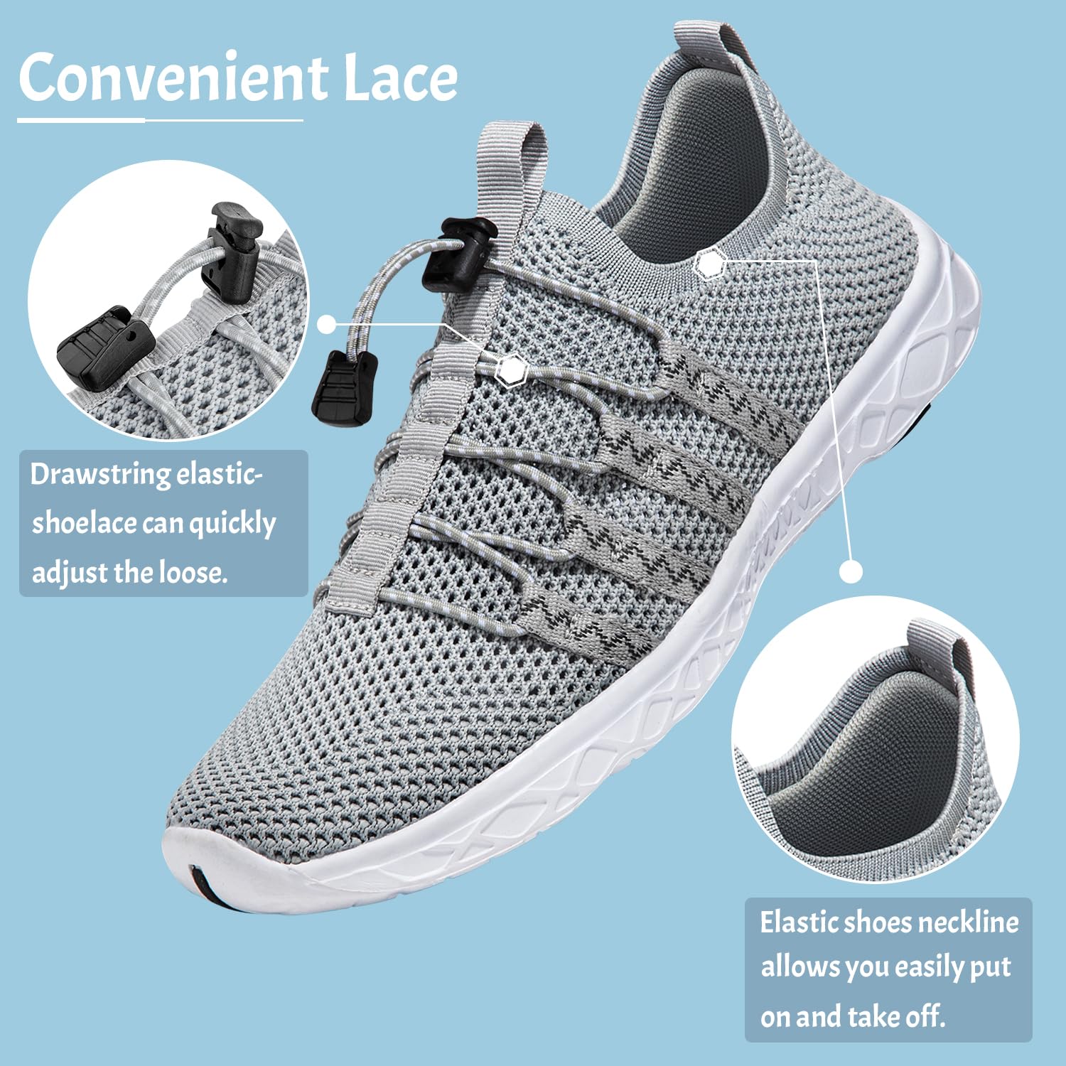 • CONVENIENT - Elastic neckline for easy on and off. The locking mechanism of the beach shoes men allows you to freely adjust the tightness of shoelaces. Lightweight and flexible aqua lake shoes will bring you a relaxed trip, You can be easy to carry out your water shoes to any place you want to go.