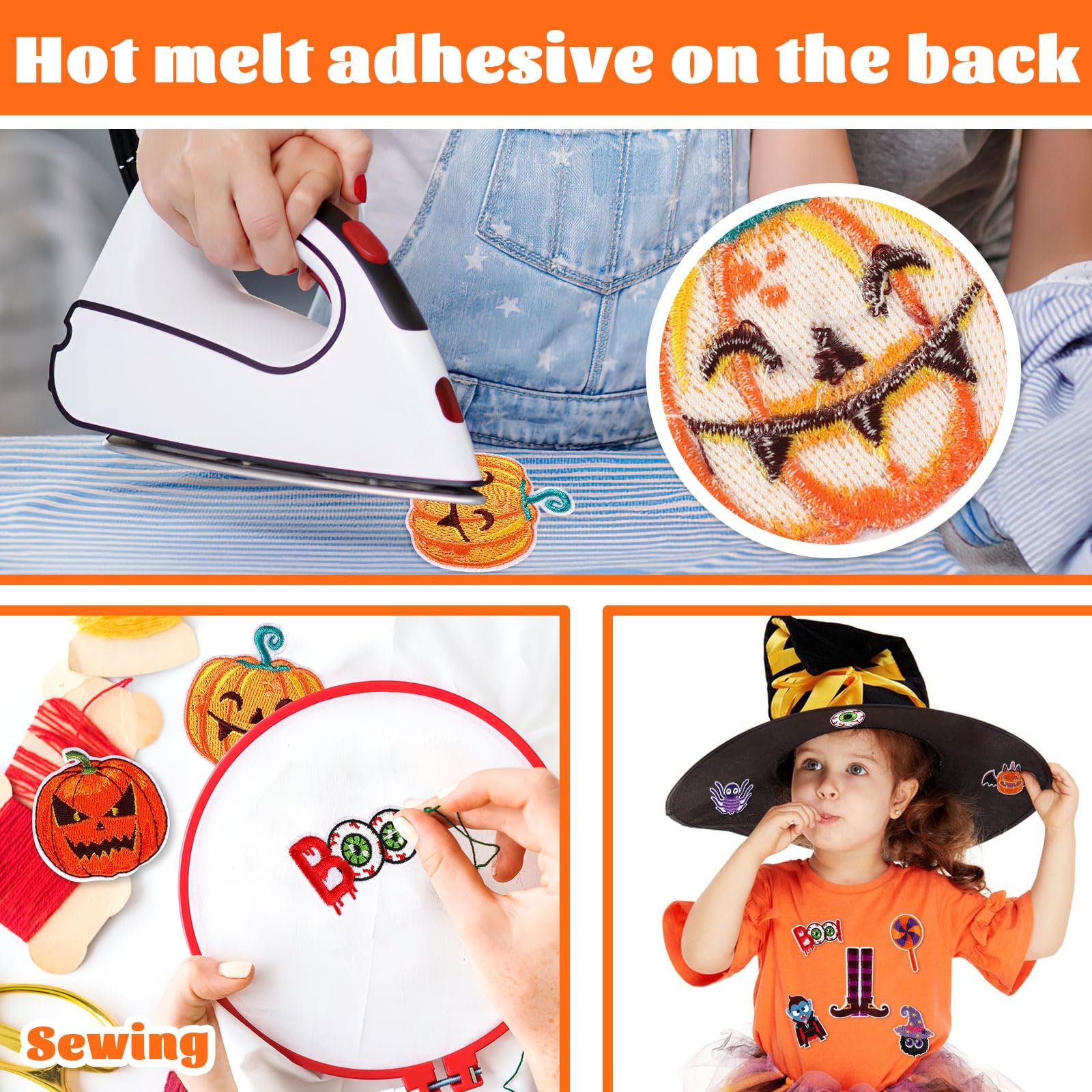 • Easy to stick: Our Halloween pumpkin patches are coated with special glue on the back, which will melt by heating. You can sew or iron it on your clothes. Keep the cloth dry and control the preheat temperature when ironing the patches. If you want to keep them from falling off, you'd sew them on