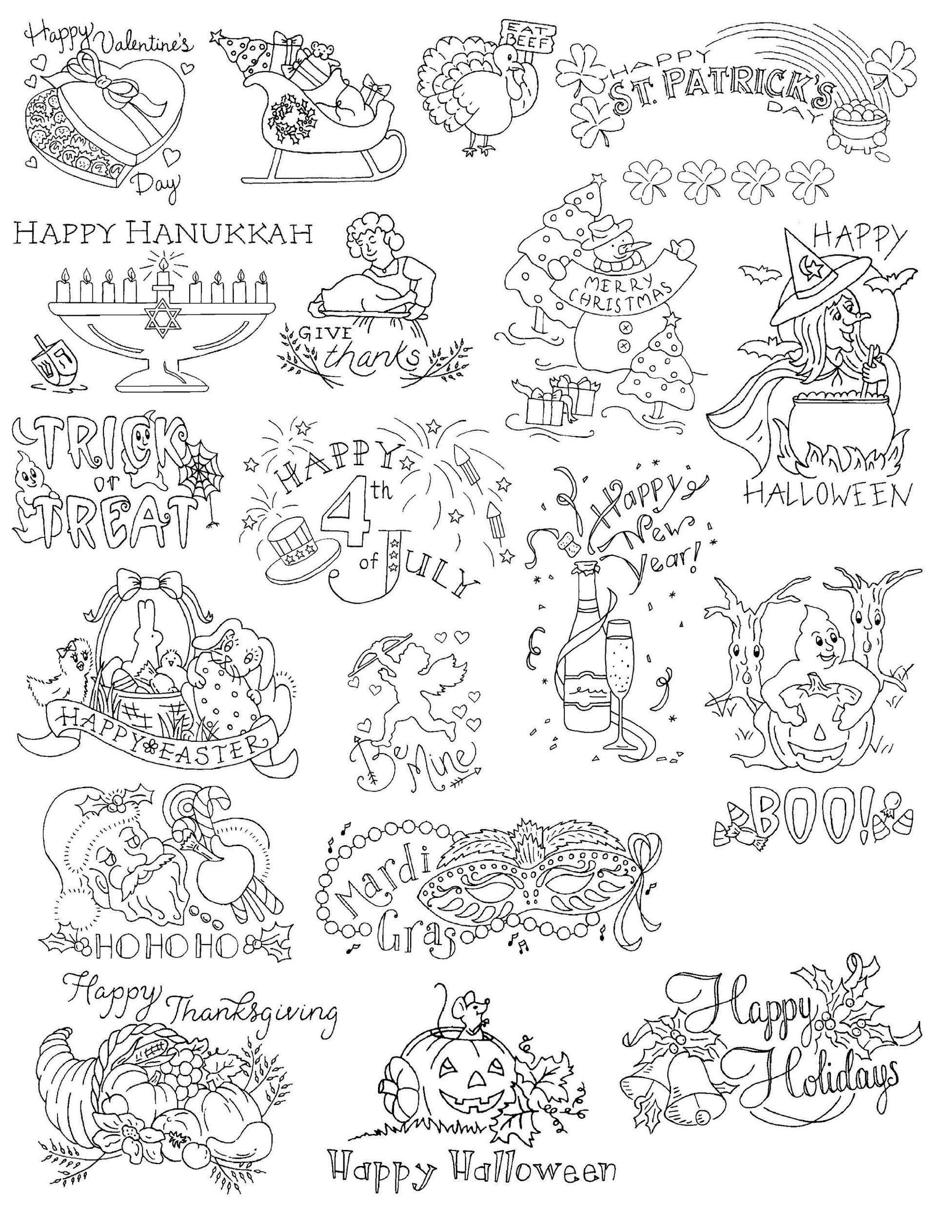 Details: This iron on transfer pattern book contain 8 pages of different holiday displays throughout the year. Use these designs to create beautiful dish towels, pillowcases, aprons or any other craft project. You can use these designs for embroidery, fabric painting and more!