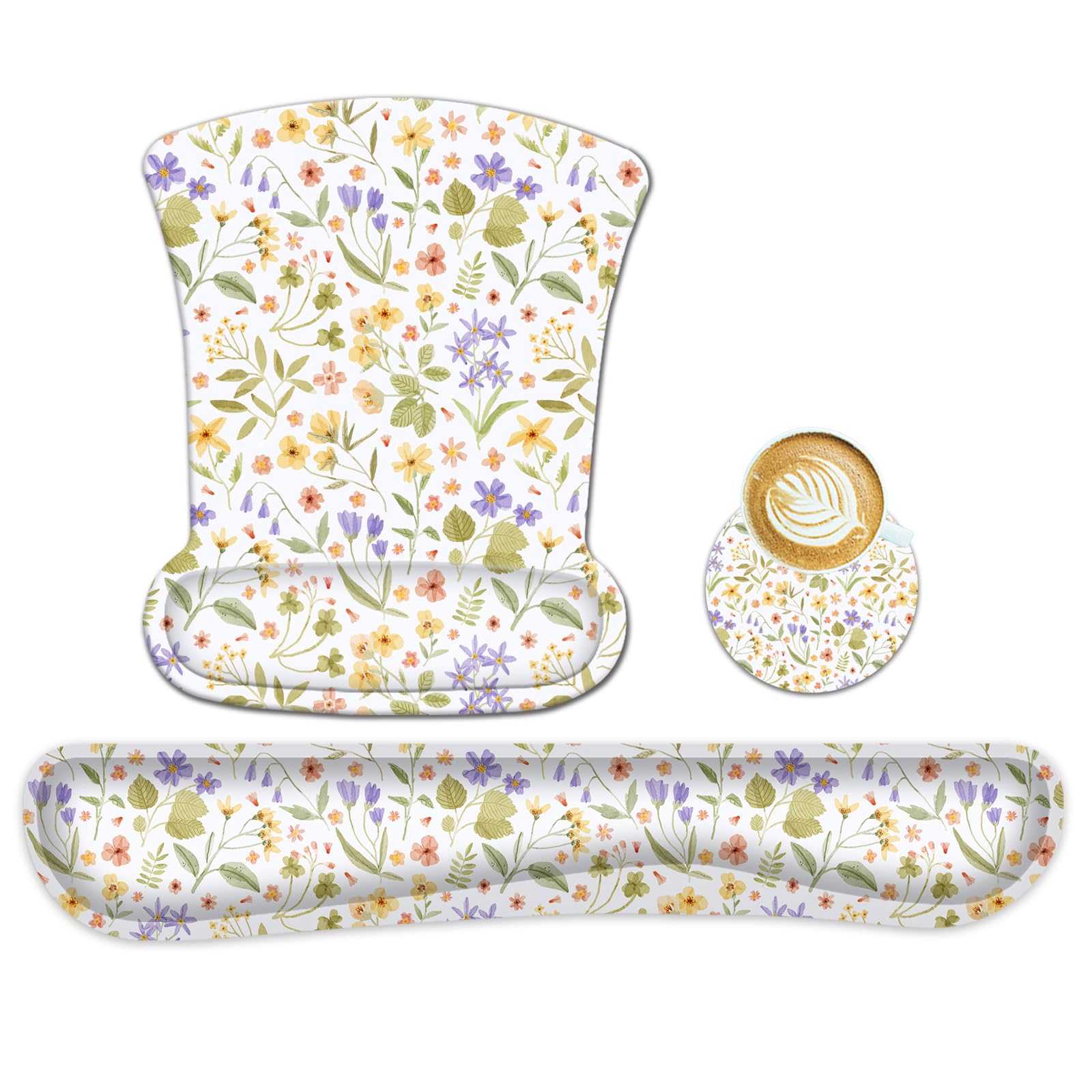 AUPET Mouse Pad Keyboard Wrist Rest Set,Ergonomic Memory Foam Mouse Pads Wrist Support Set,Non-Slip Base, Smooth Surface, Pain Relief for Gaming,Office (Pressed Flower Art)