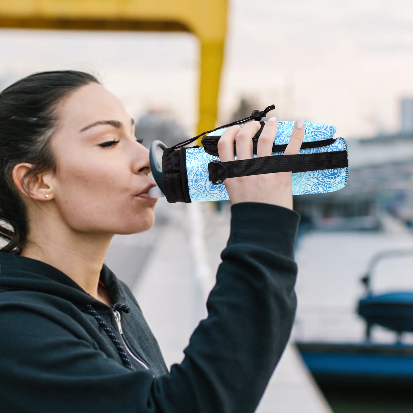 • HIGH QUALITY MATERIAL: our water bottle carrier bag case sling cover made of 4mm thick neoprene material,soft,nsulated,elastic,water resistance and shockproof.Perfectly protect your bottles in daily use and keeps the water warm or cold.