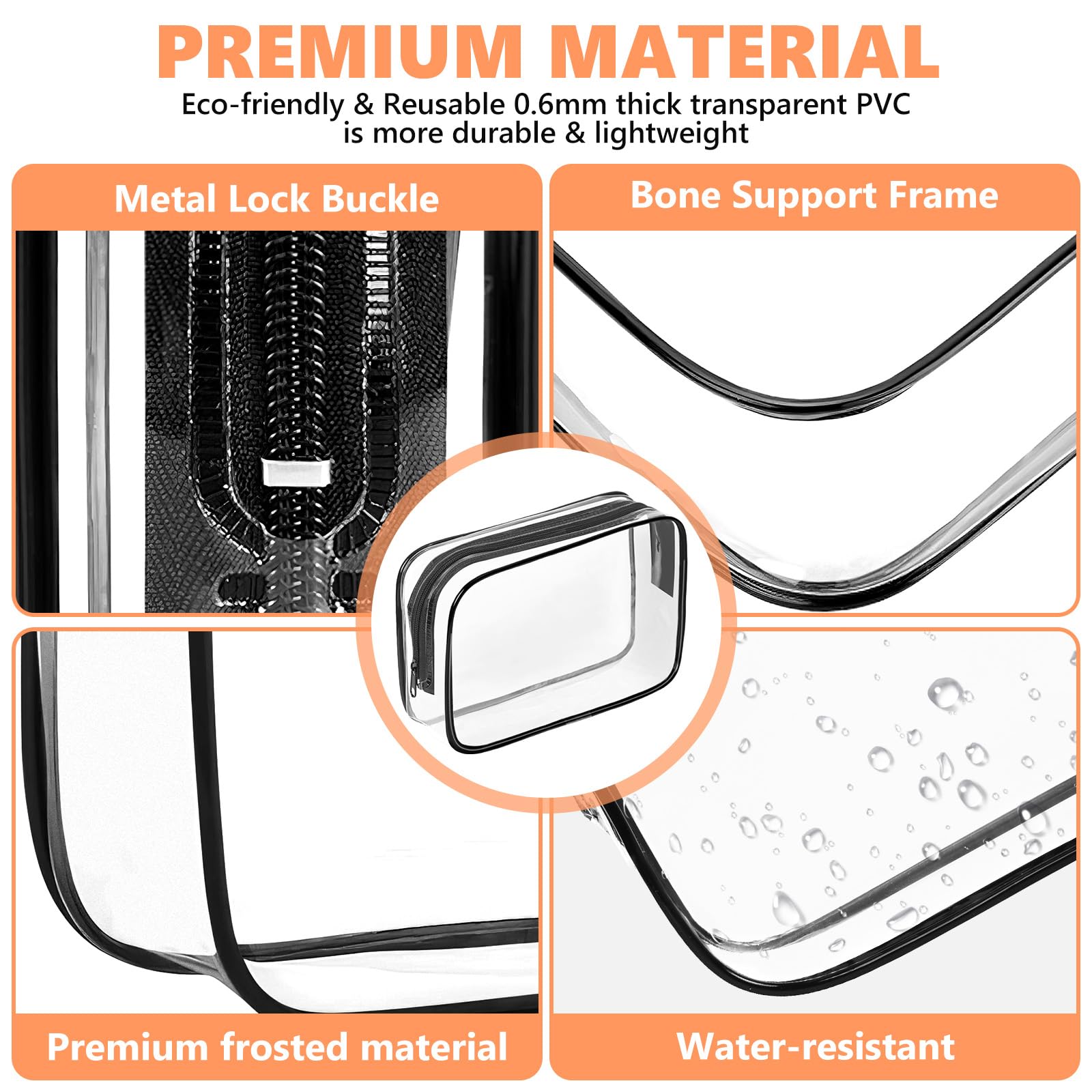 • TSA APPROVED: The TSA certified clear toiletry bag strictly follow 3-1-1 airport regulations, so you don't have to worry about getting through airport security. All makeup bags are made of clear PVC material, so you can see the contents of the bag at a glance, and are BPA-free, safe and durable.