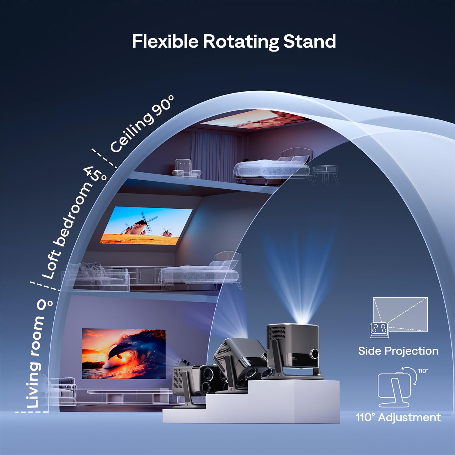 • Projector for Bedroom - 360° Visible Sound & DoIby Audio: 20W high-power speakers with DoIby Audio bring cinema-grade sound to life. The rear-facing Visible Sound design delivers deep bass and crisp highs, turning every movie night into an auditory delight.