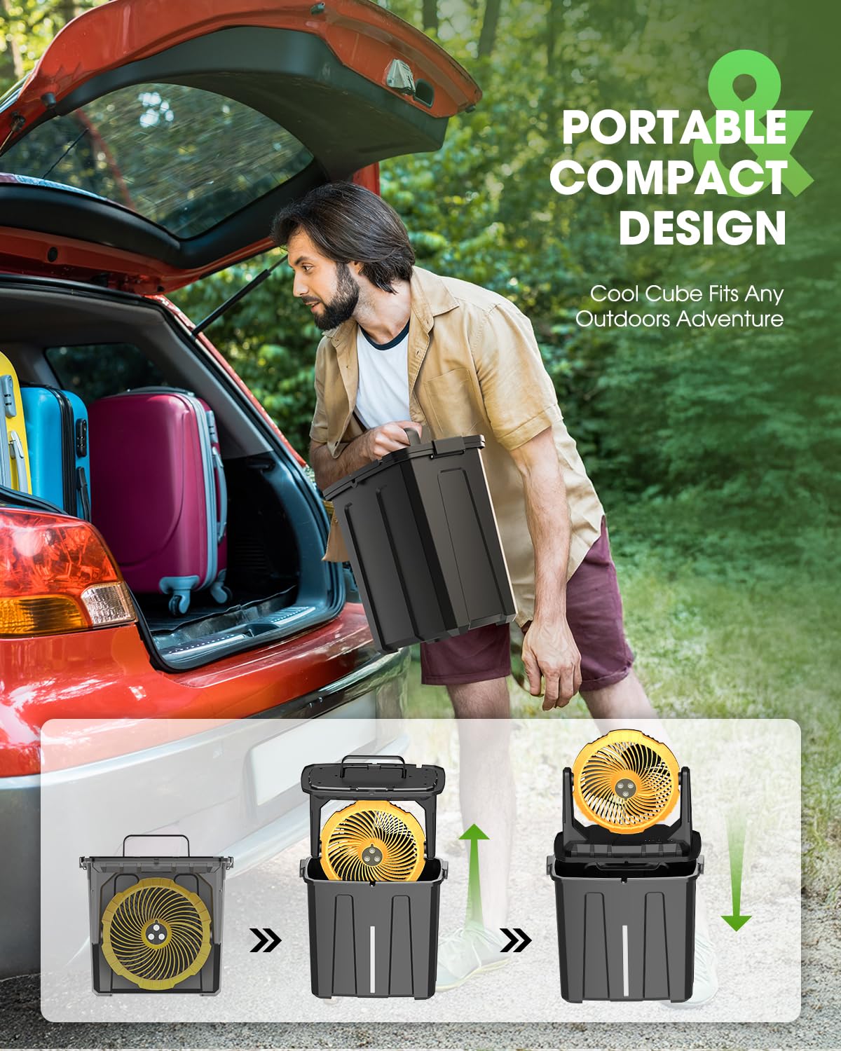 • ⭐【Amazing Bucket Misting Fan】- How Mist Fan Effects: Cool water mist sprays onto the skin, evaporating and taking away more heat from the skin's surface; as the water mist disperses into the air, it further lowers the temperature of the surrounding air. That dual cooling effect that delivers crisp, mountain-fresh breezes—say goodbye to dryness and heat this summer.