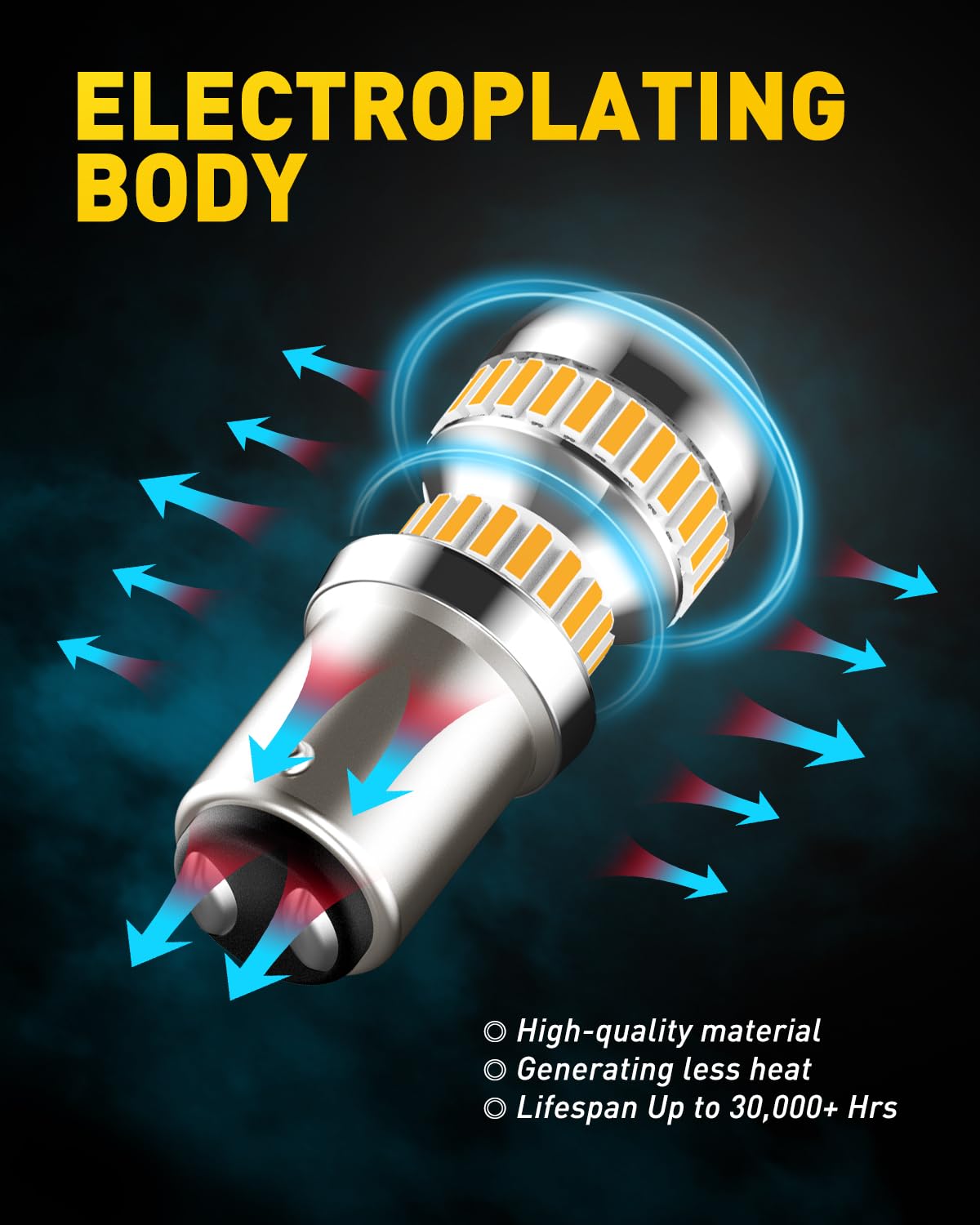 • Electroplating process housing. Improves oxidation resistance and produces less heat. High-end styling, matching great in the assembly. Ideal replacement for your halogen 2357 amber bulbs