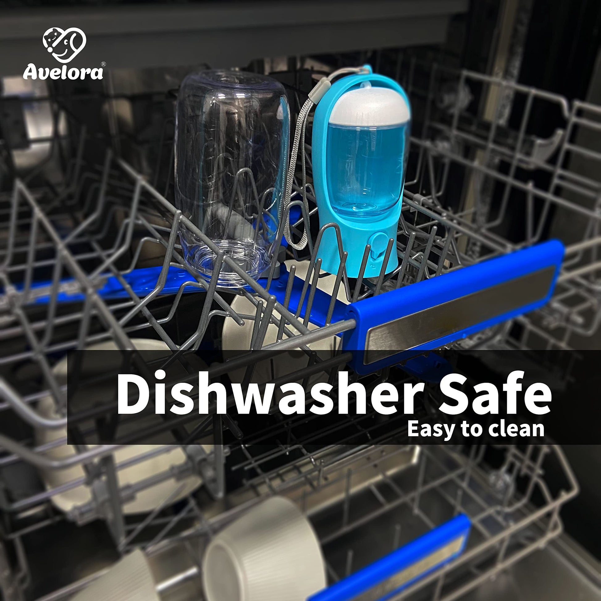 • 【Upgraded Bigger Capacity】The Avelora pet water bottle holds up to 19oz (550ml) of water and 100g of food, ensuring that your dog, cat, rabbit, or other small pets stay hydrated and well-fed on the go. This compact and portable bottle fits easily into your pocket, backpack, or can be carried by its handy sling rope.