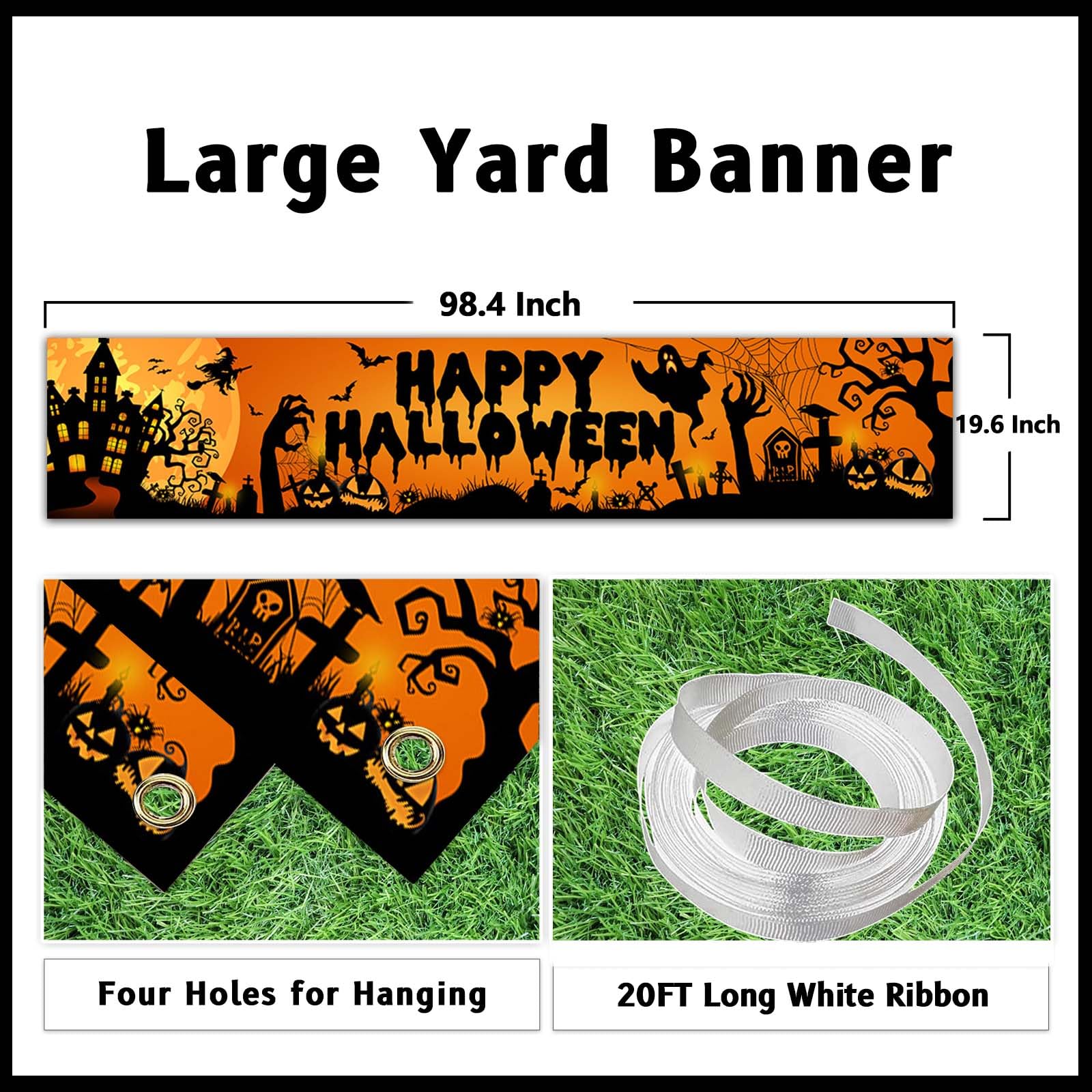 • You Will Get: 1 piece of 98.4x19.6 inch extended large 'Happy Halloween' yard sign banner with rope, large enough for indoor or outdoor decorations