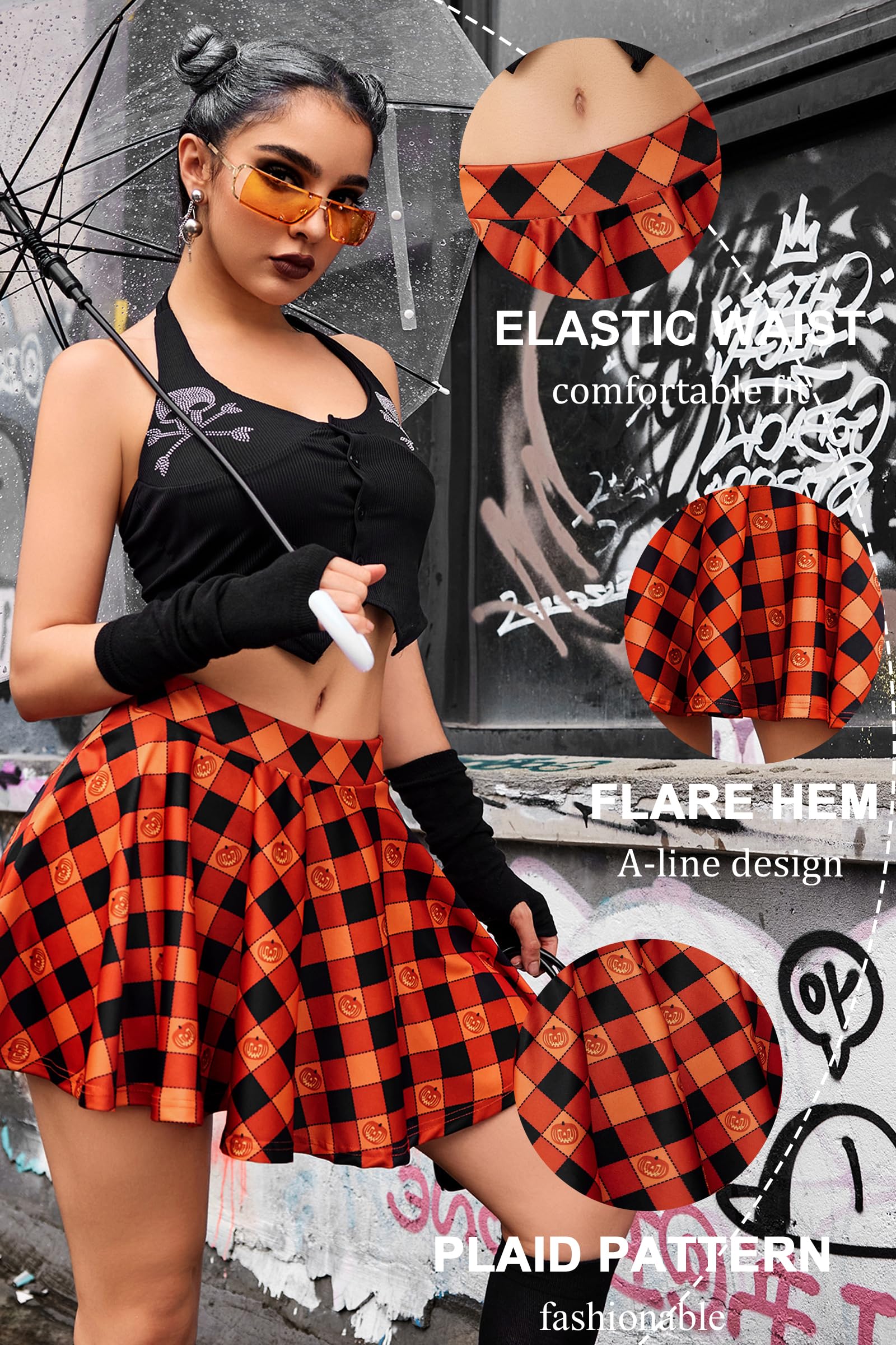 Avidlove Halloween Dress for Women Pleated Skirt School Girls CostumeA Line Mini Short Skirt (Pumpkin Plaid, Medium)