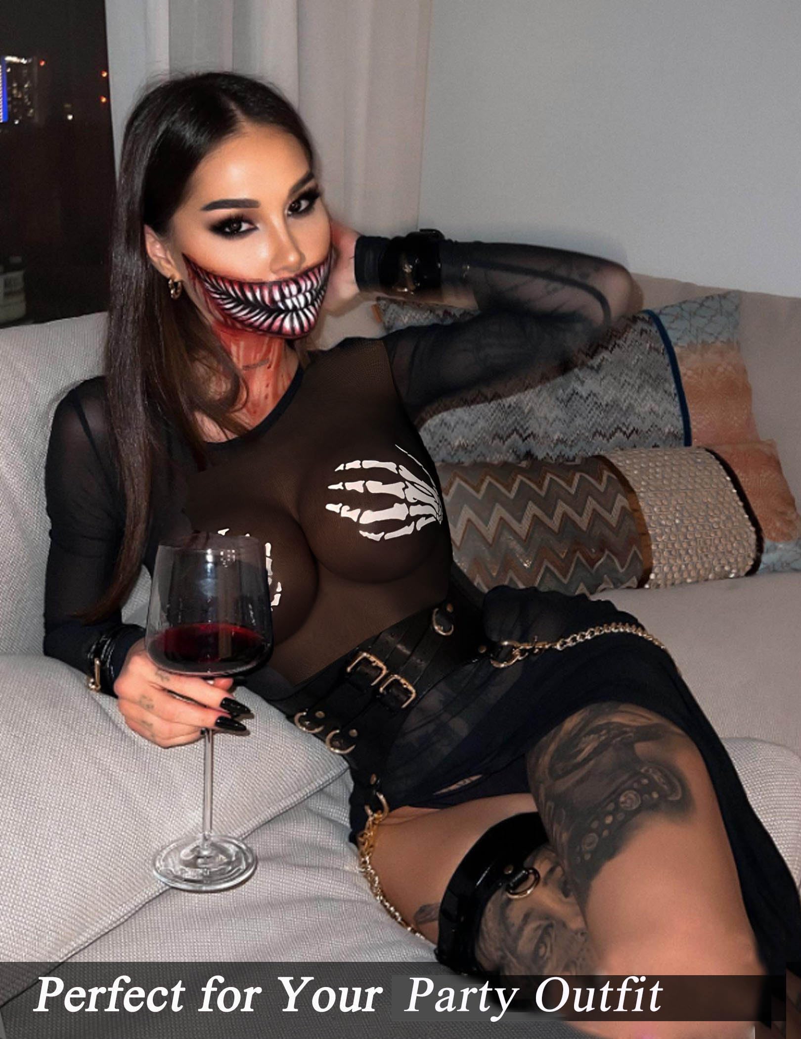 Avidlove Long Sleeve Mesh Crop Top Women's See Through Cropped Top mesh Top Sheer Shirt Skull Palm M