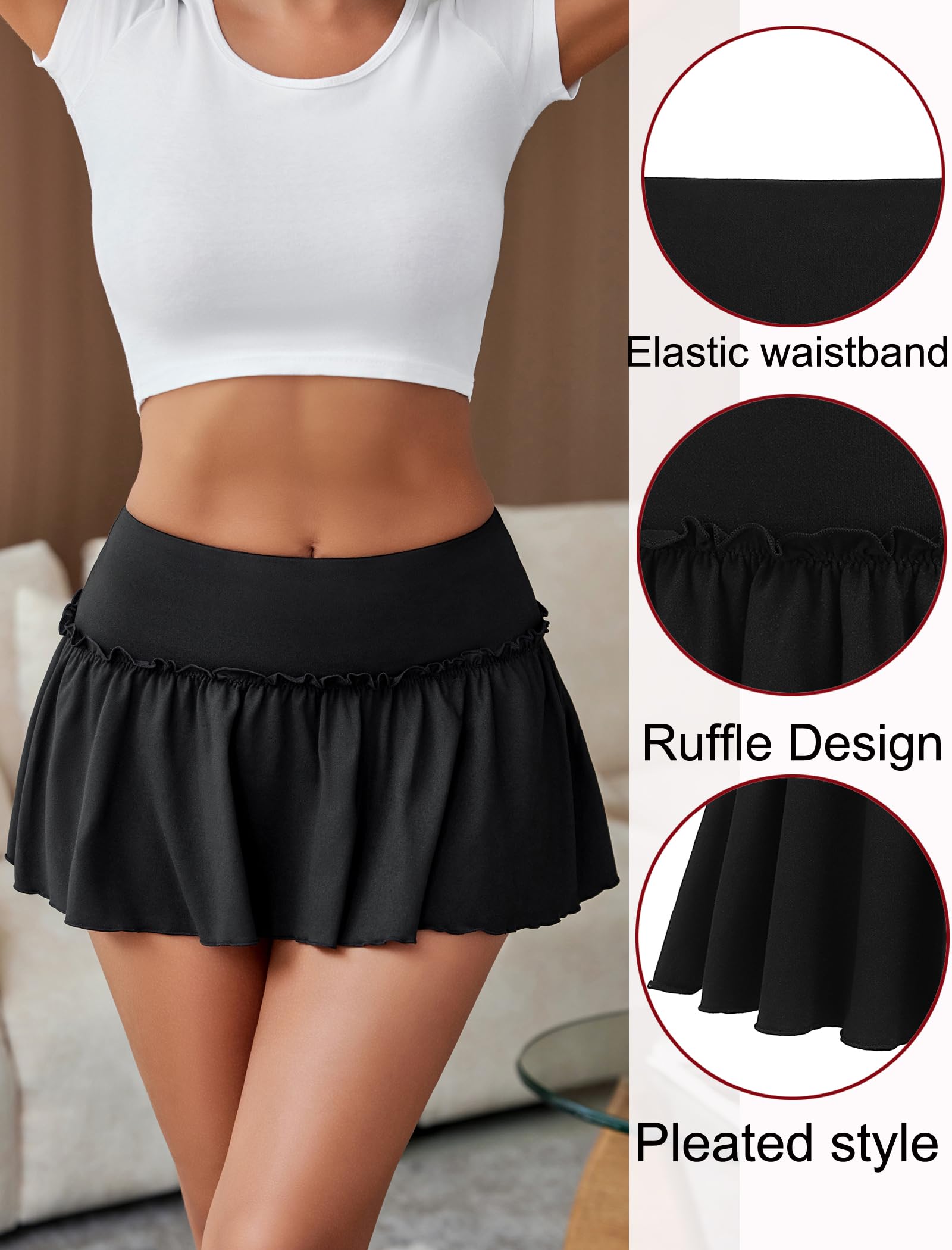 Avidlove Sexy Mini Skirt for Women Solid Ruffle Lingerie Skirt Short Skirts Black