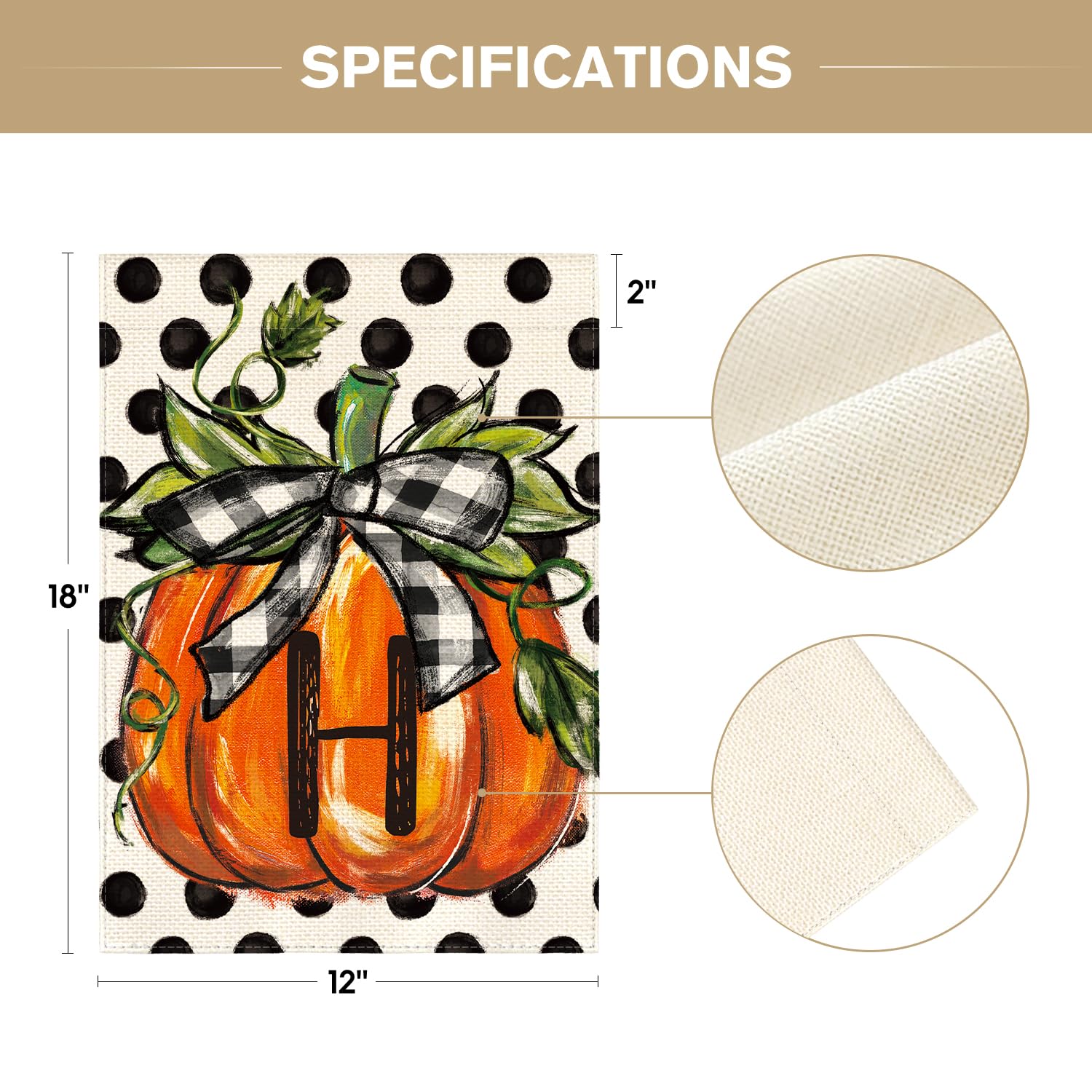AVOIN colorlife Fall Monogram Letter H Garden Flag Polka Dot Pumpkin 12x18 Inch Double Sided Outside, Small Burlap Family Last Name Initial Yard Decoration