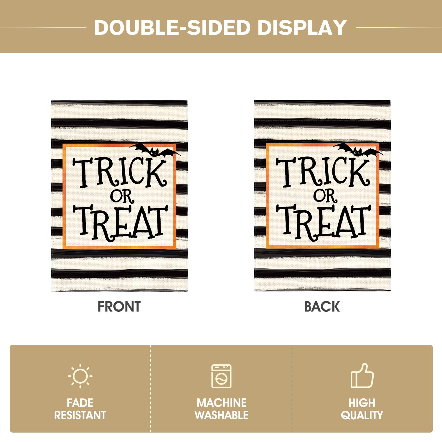 AVOIN colorlife Trick or Treat Garden Flag 12 x 18 Inch Double Sided Outside, Halloween Holiday Yard Outdoor Flag