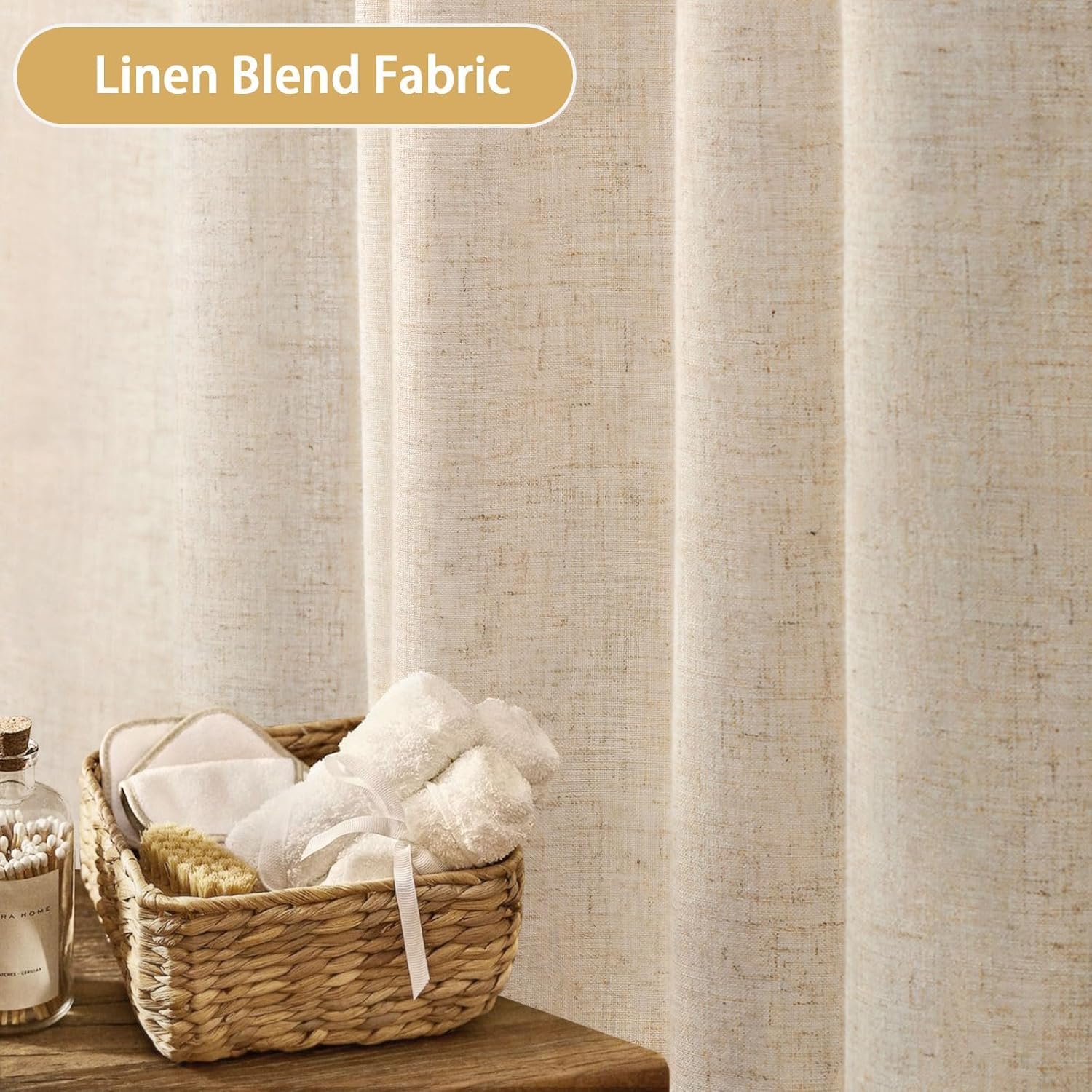 Awellife Extra Long Shower Curtain 84 Inch Length Beige Linen Blend Fabric Shower Curtain for Bathroom, Extra Long 72" W x 84" L