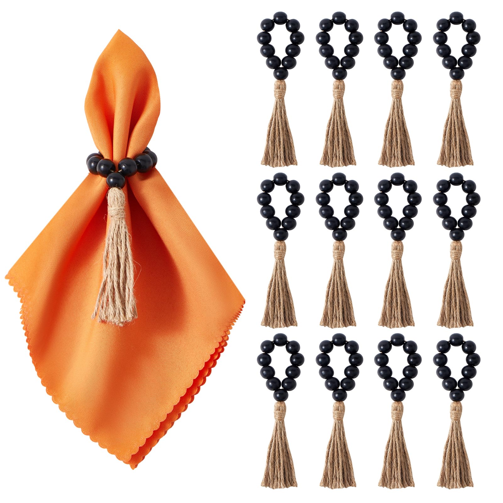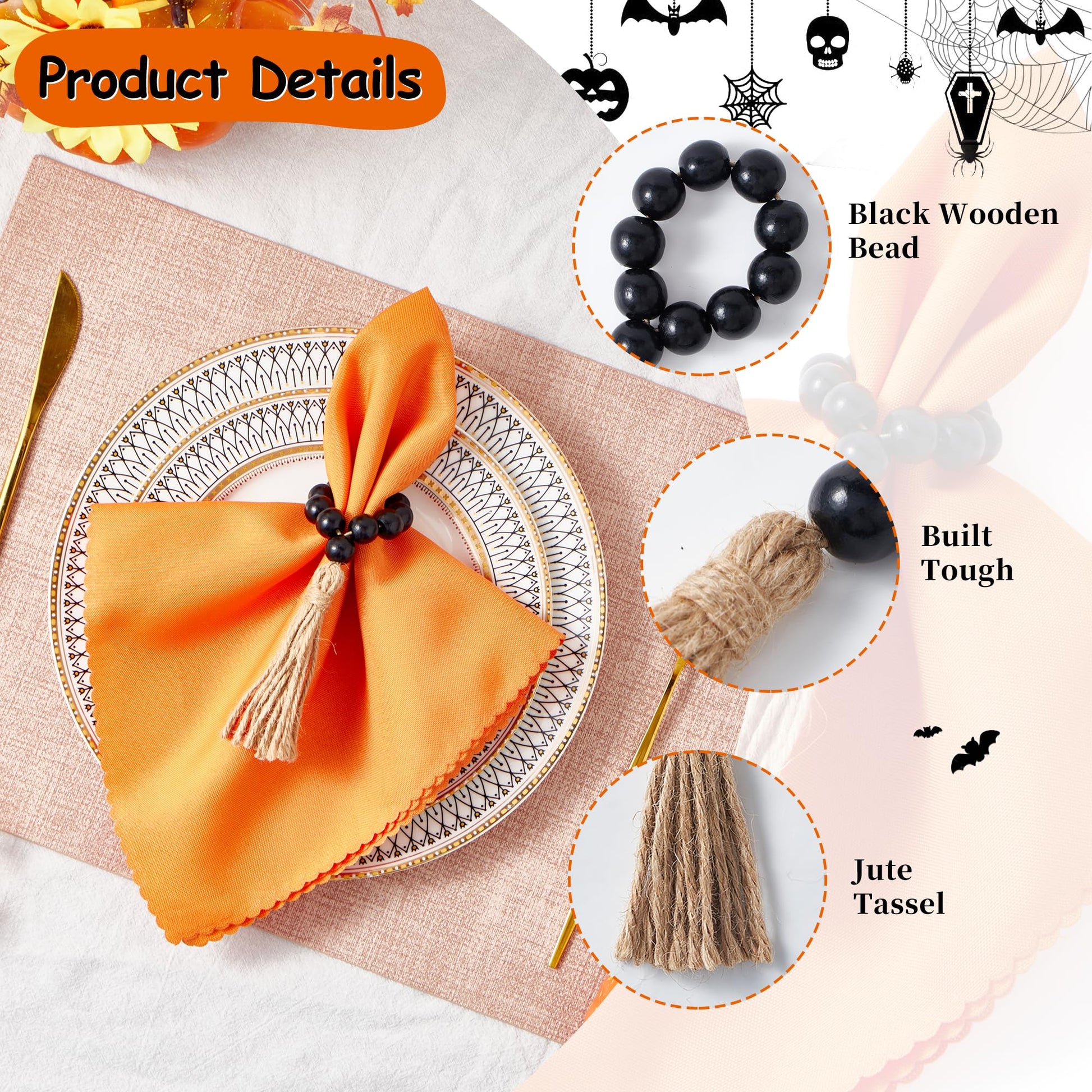 • Exquisite Table Decorations - You will receive Hallowen table decor Black wooden napkin rings set of 12. Each Hallowen napkin rings measures approximately 6.1 inches/15.5cm in length, featuring 10 beads. The tassel length is about 3.53 inches/9cm, providing a suitable size that accommodates most Christmas cloth napkins. With an abundant quantity in each set and caters to a lot of your styling needs. Elevate your table aesthetics with these exquisite table decorations!