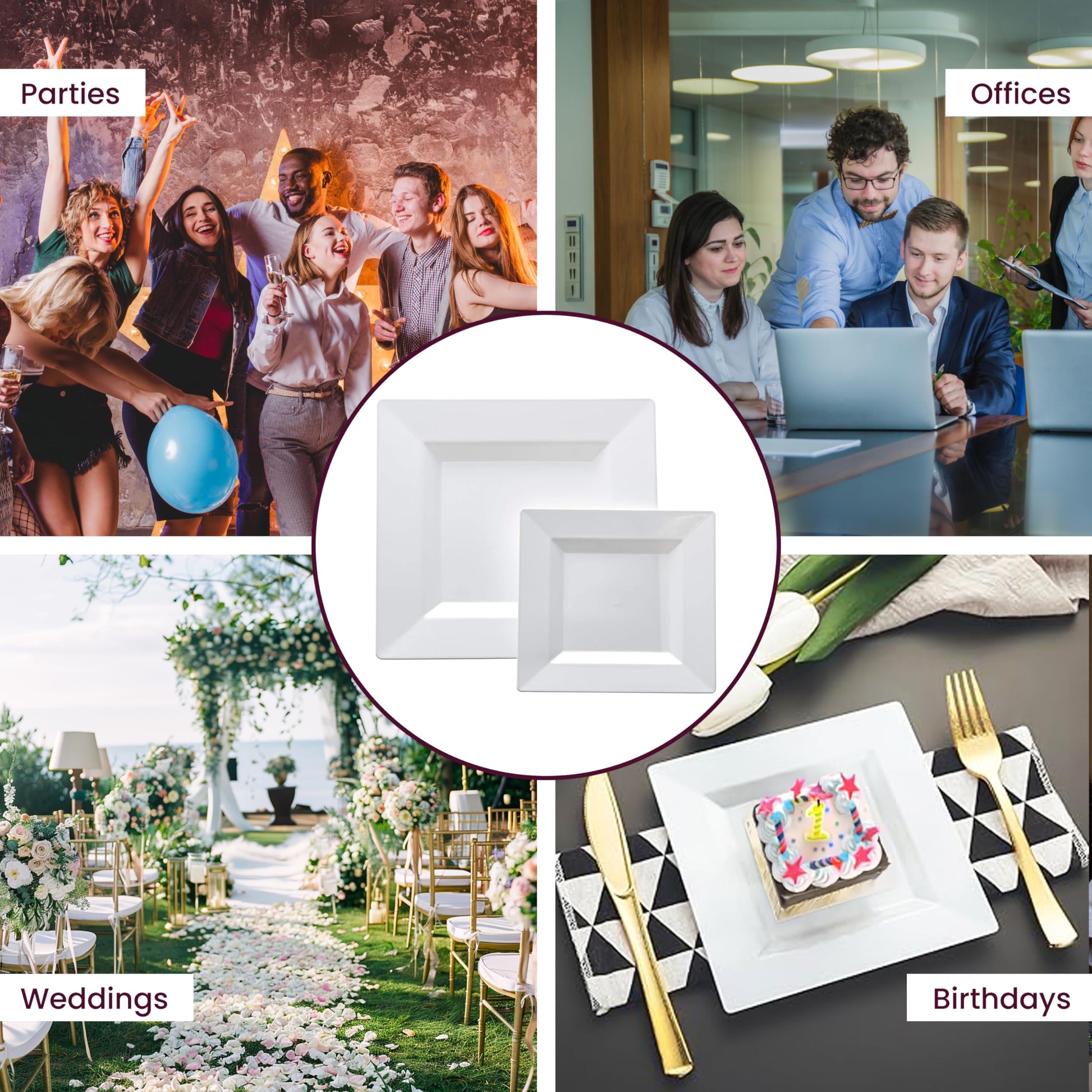 • Quick Cleanup Solution: Perfect for large gatherings; cleanup is a breeze with these square disposable plates; just throw them away after your event for easy post-party tidying
