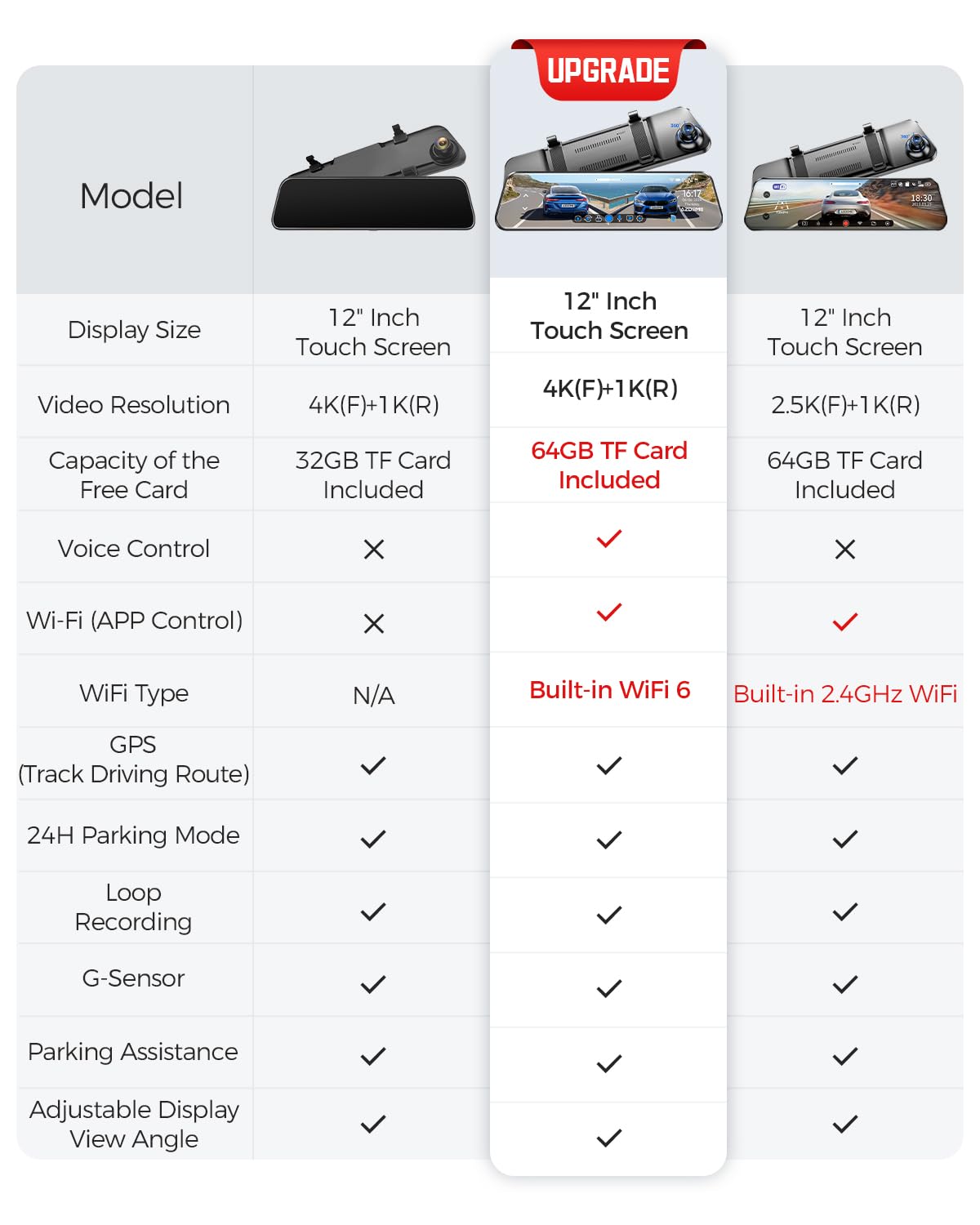 AZDOME PG17 12" 4K Mirror Dash Cam Front and Rear, Wi-Fi 6 Rear View Mirror Camera with 64GB Card, Voice Control Dash Camera for Car, Rearview Mirror Camera with GPS Night Vision Parking Assistance