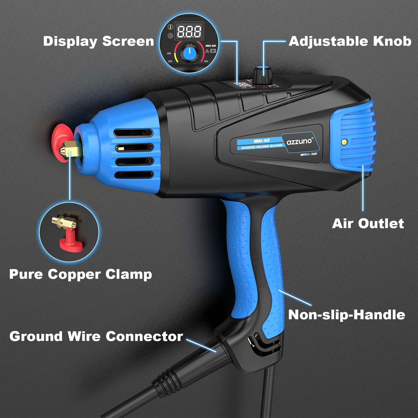 AZZUNO Handheld ARC Welding Machine 110V, 90A Portable Stick Welder Gun, Hand Held Welder Machine with IGBT Inverter Fits for 1/16''-1/8'' Electrode Rods