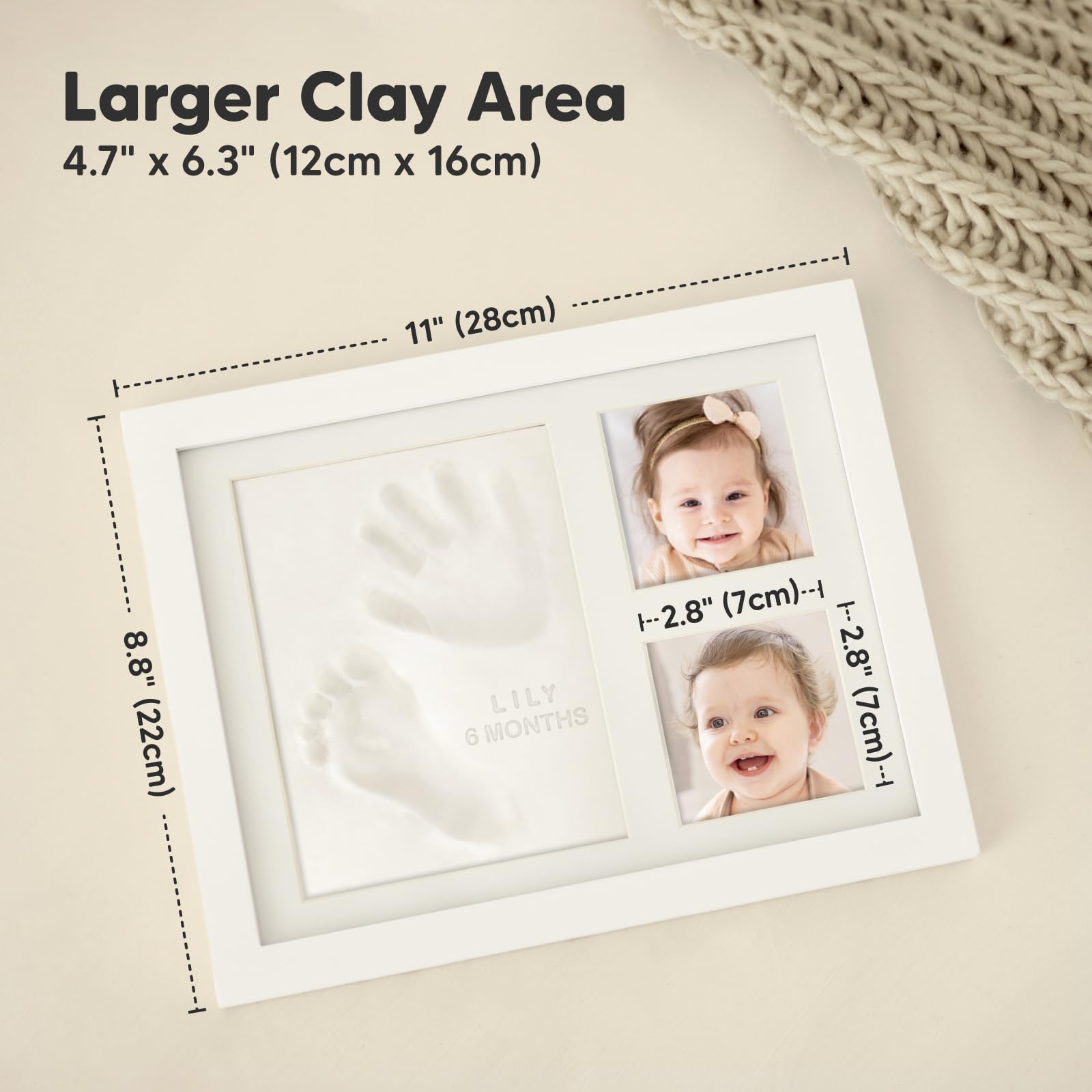 • 100% Safe Food-Grade Clay - Our baby picture frame features 100% baby-safe air-dry clay, perfect for preserving your baby prints. Our premium material ensures durability, the baby hand and footprint maker will look flawless for years to come.