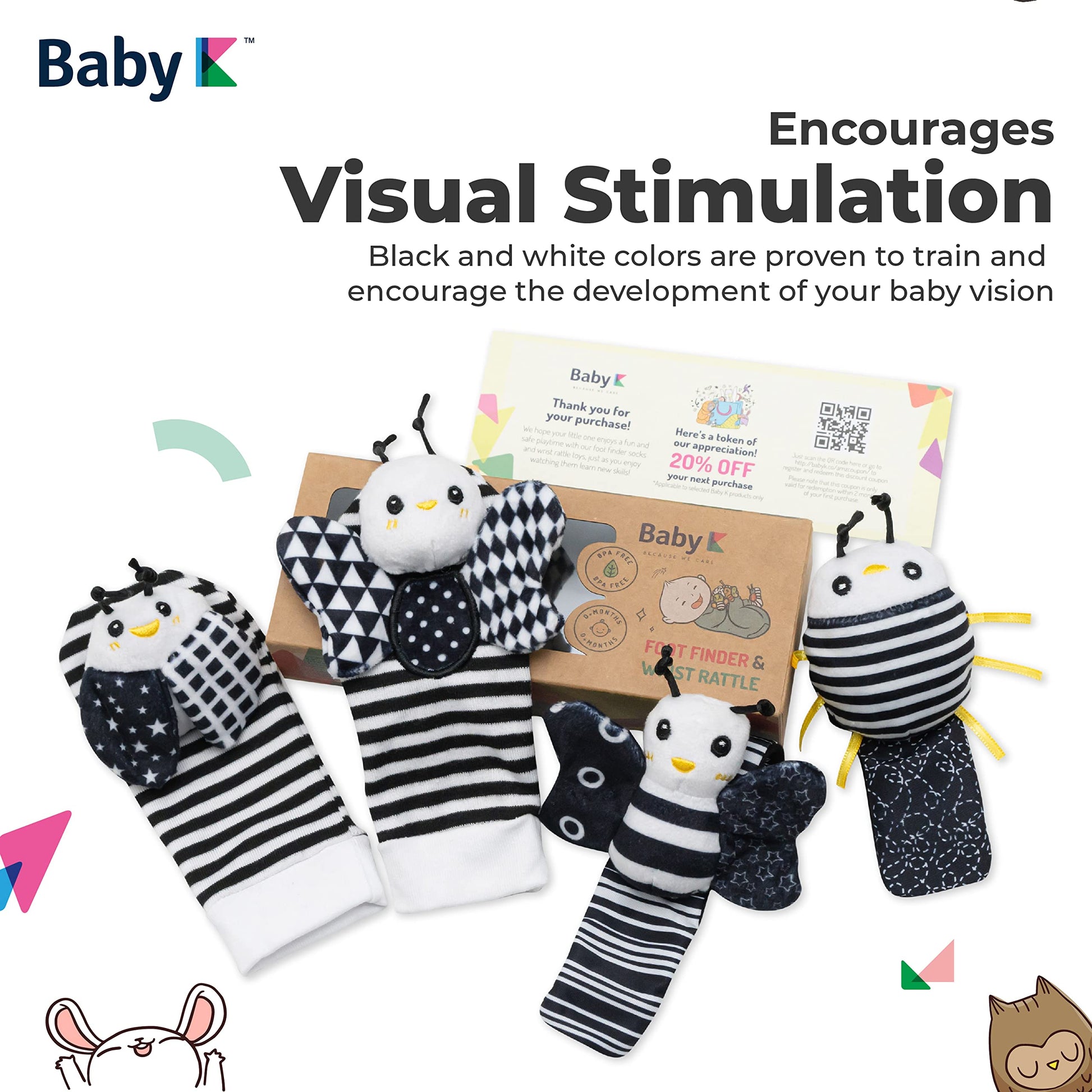 • 🧠 STIMULATES BABY'S SENSES - Our black and white monochrome wrist rattles for infants help stimulate your little one's visual development. With adorable crinkling bug friends attached to each wearable rattle, these baby toys are sure to keep them entertained for hours on end.