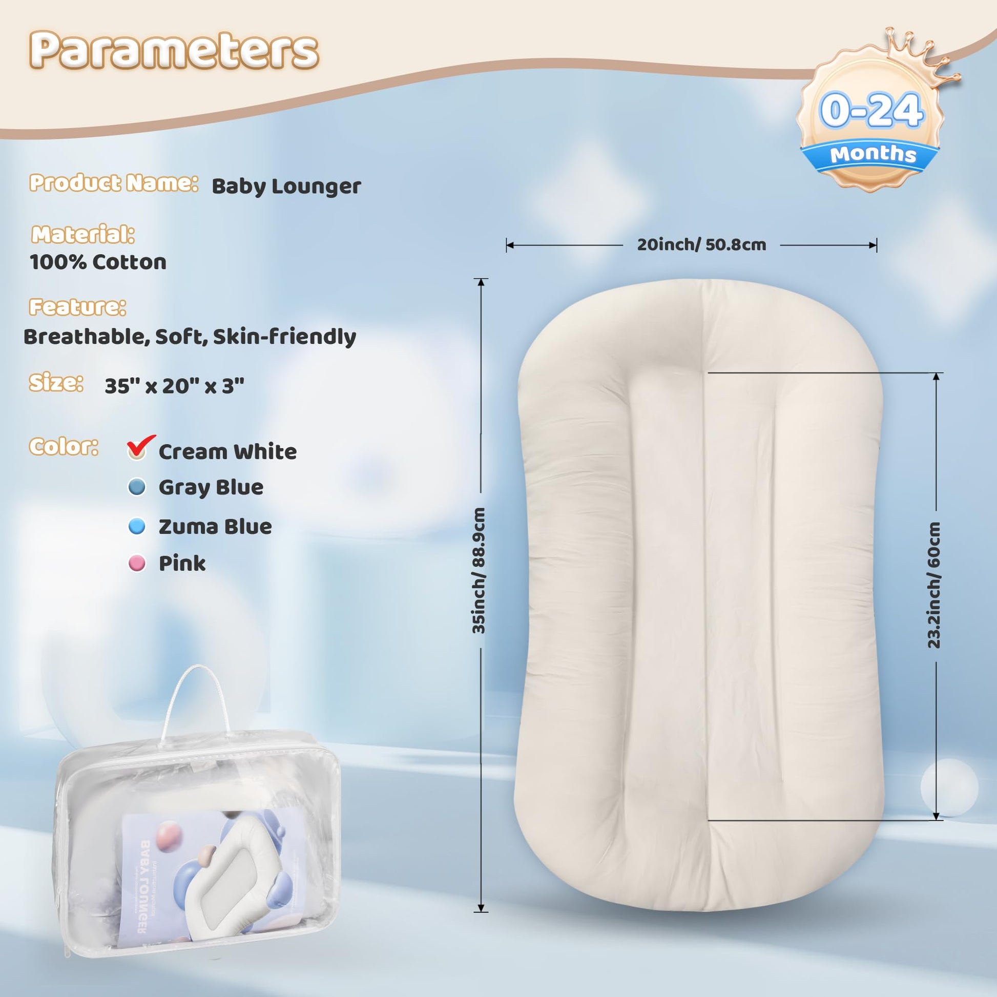 Baby Lounger - Baby Lounger for Newborn, 0-24 Months, Infant Lounger for Home and Travel, Soft Cotton, Baby Nest Lounger, Newborn Babies Essentials Gifts, White (Lounger Cover Included)