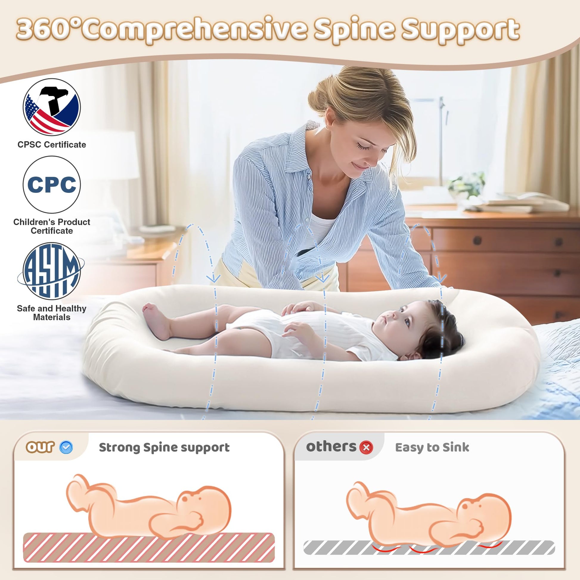 • Supporting Your Baby’s Growth and Comfort: This infant lounger features a soft, supportive bumper and 3D polyester fiber filling that gently supports your baby's back, promoting healthy spinal growth. Whether your little one is tummy time playing, lounging, or learning to sit, the lounger provides gentle, comforting support