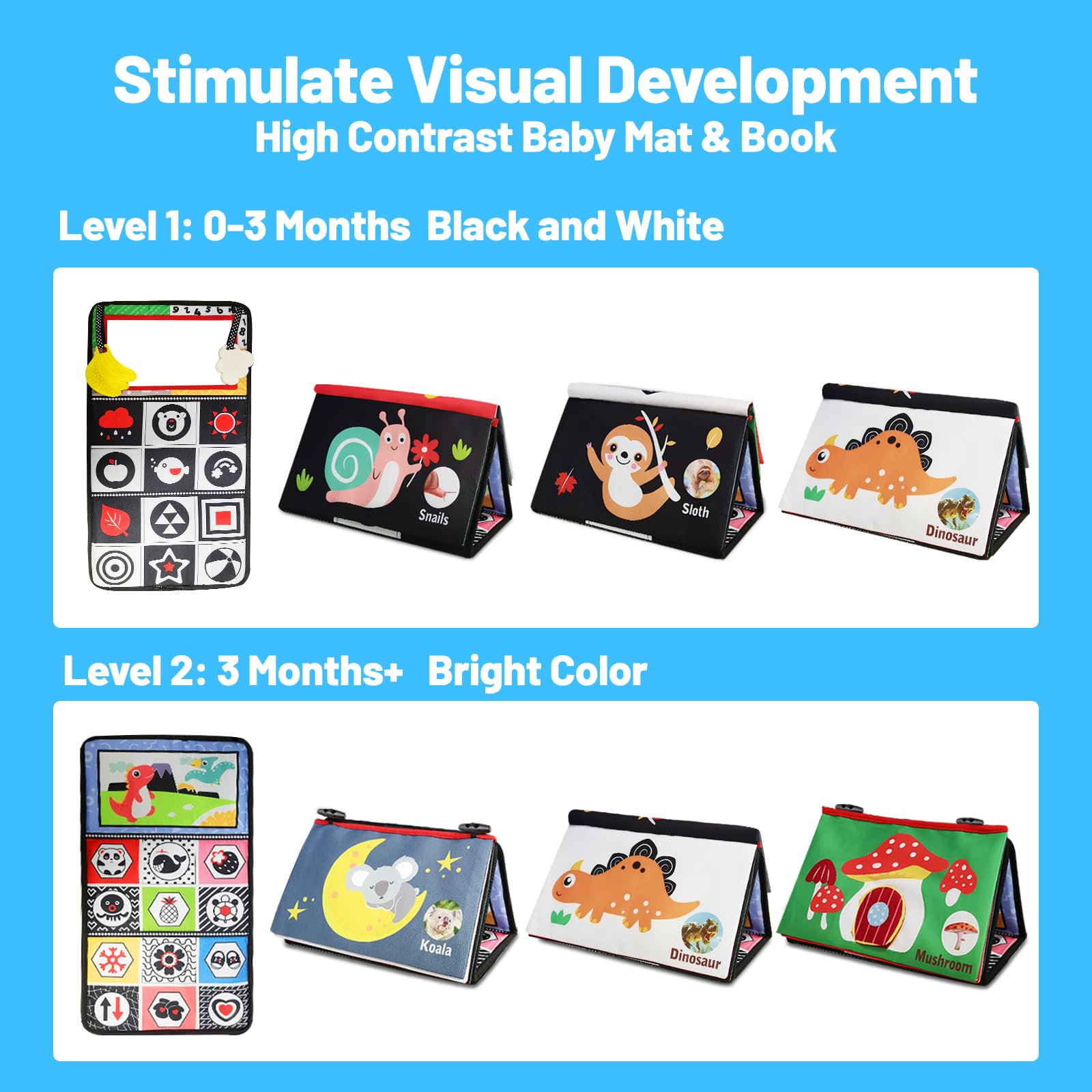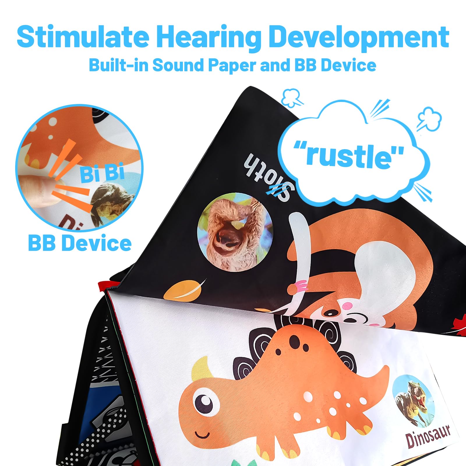 • 【 High Contrast Baby Book for Visual & Hearing Stimulation】Removable High-contrast color is easier to attract baby's attention, stimulate baby's vision, with cute animal and plant patterns, cultivate newborn's sensory of color, shape and crinkle sound; High contrast baby toys for newborn. Ideal Newborn toys 0 3 6 12 months brain development.
