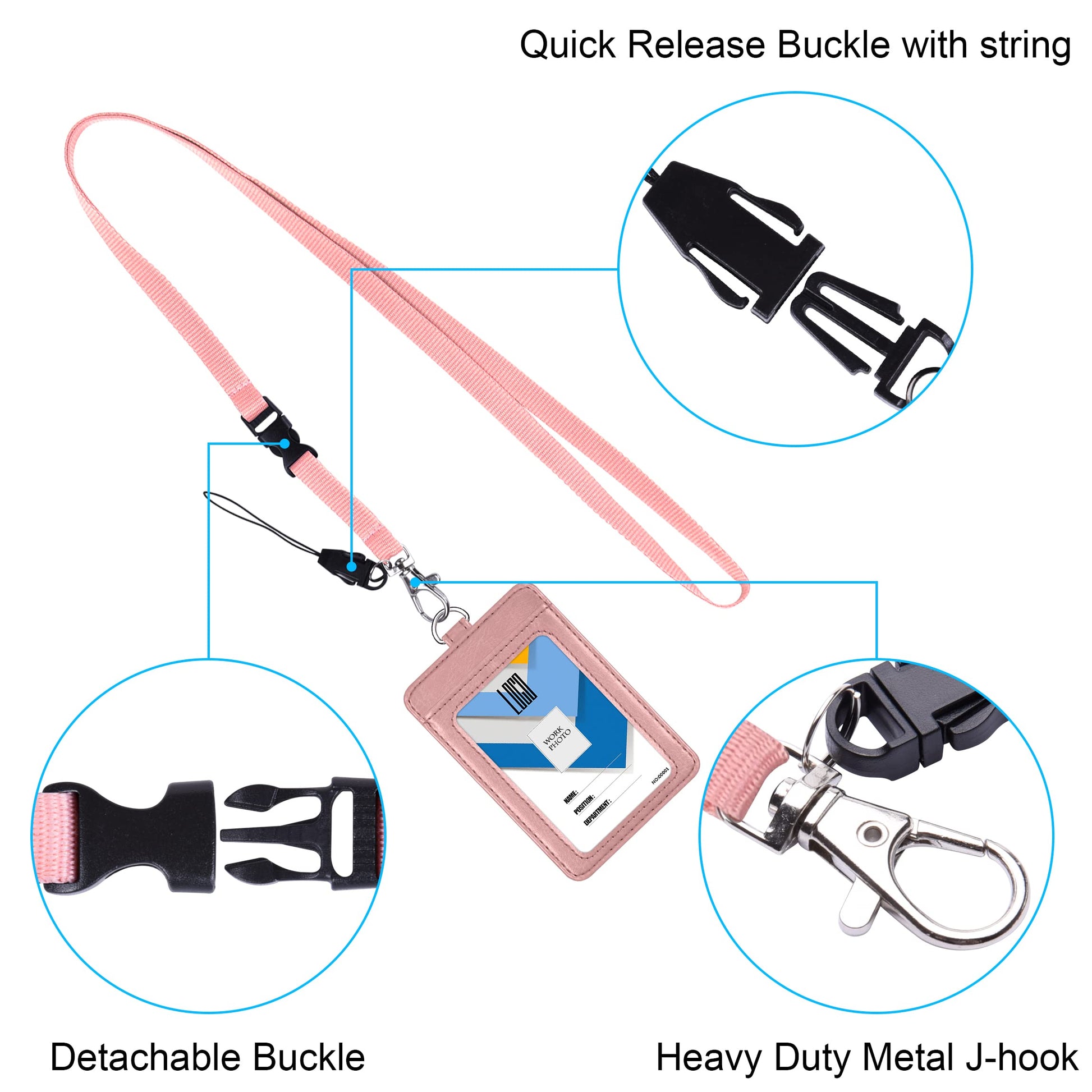 • Highlights: Badge Holder is Made of Premium Durable PU leather; 1pcs 22' Lightweight, Comfortable, Strong, Premium Polyester Neck Straps Lanyards with J-Hook & Quick Release Detachable Buckle