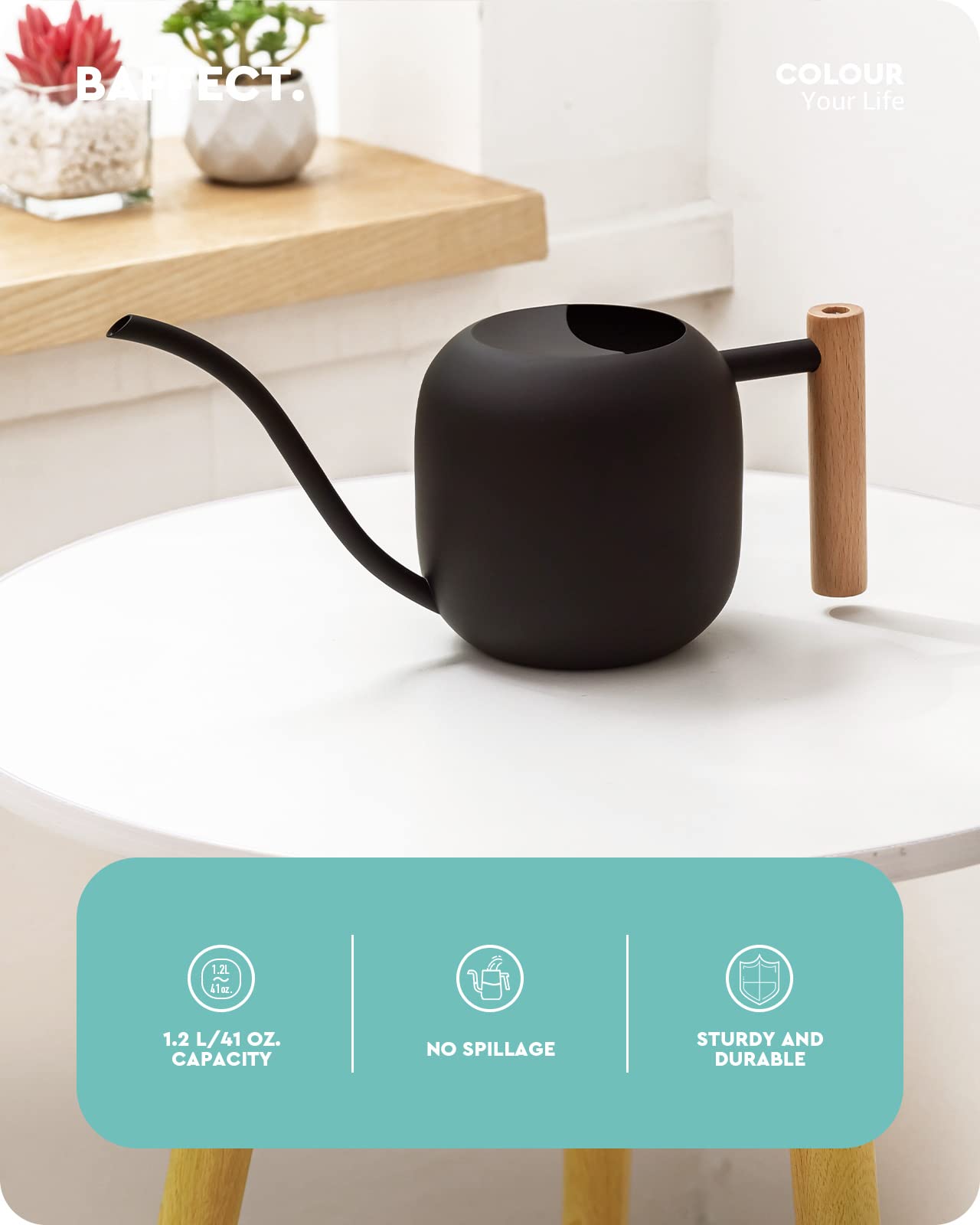 • Ideal capacity - The capacity of Baffect Indoor Watering Can is 1.2L/41oz, making it ideal for watering small houseplants. With its ideal capacity, this indoor houseplant watering can allows you to water multiple small bonsai without frequent refilling.