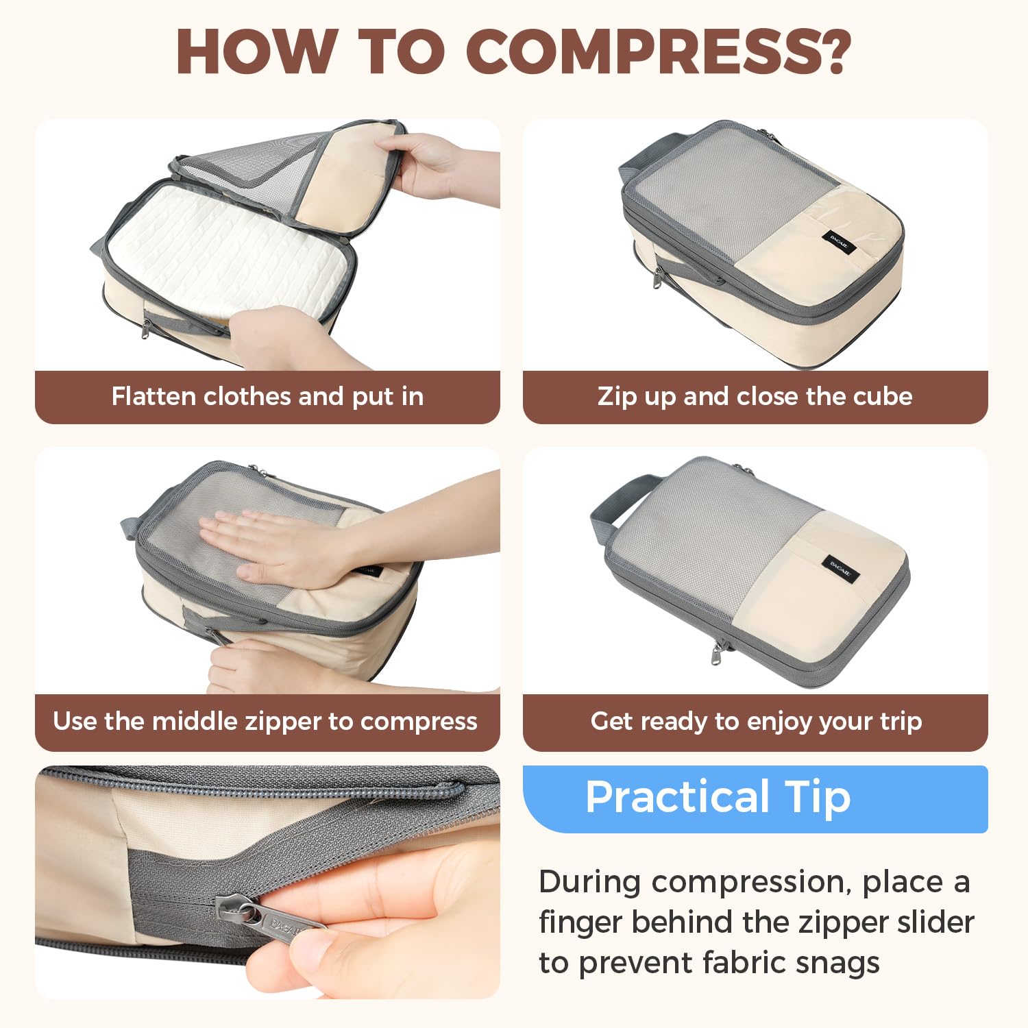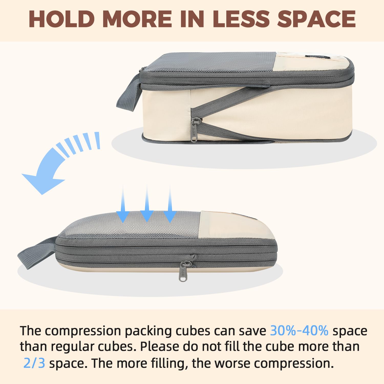 BAGAIL 6 Set Compression Packing Cubes for Travel, Compressible Packing Organizers Travel Accessories for Luggage Suitcase(6 Set, Beige)