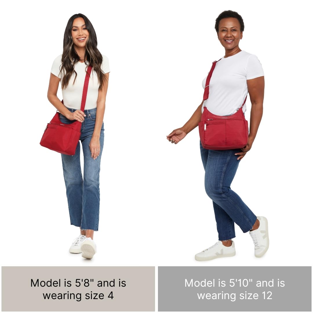 The Baggallini Securtex® Anti-Theft Free Time Crossbody Bag will be your new favorite vacation style. With the option to use as a crossbody or shoulder strapped purse, it has multiple safety features that will make you feel protected in any travel destination. This bag includes slash resistant panels, a double-cable cut-resistant strap, locking zippers and RFID-protection. It’s a spacious water-resistant crossbody bag that weighs 1.125 pounds, and measures 10.5” wide, 9” tall, and 4” deep.