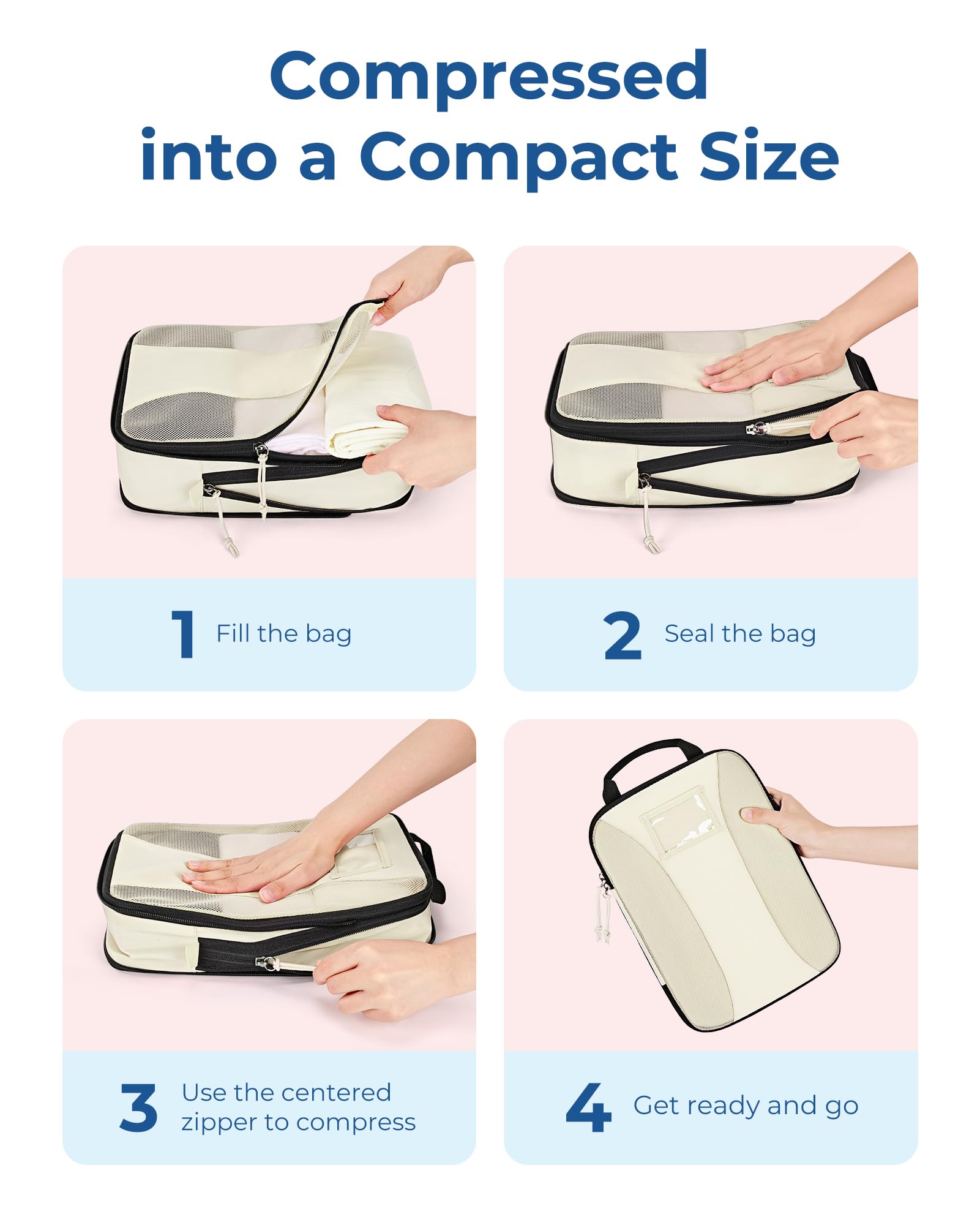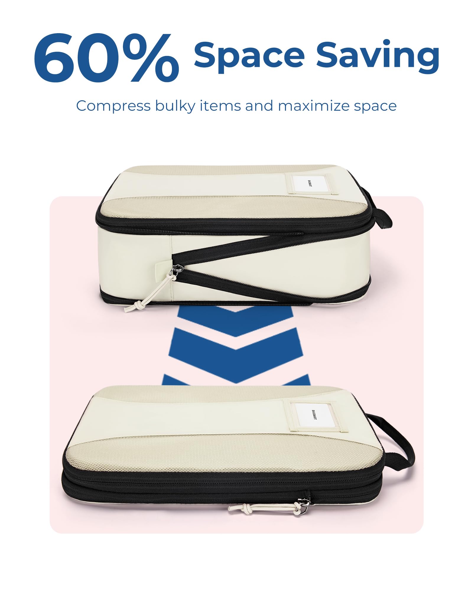 BAGSMART Compression Packing Cubes, 6 PCS Packing Cubes for Suitcases, Travel Bags Organizer for Luggage, Lightweight Packing Cube for Travel Essentials, Beige