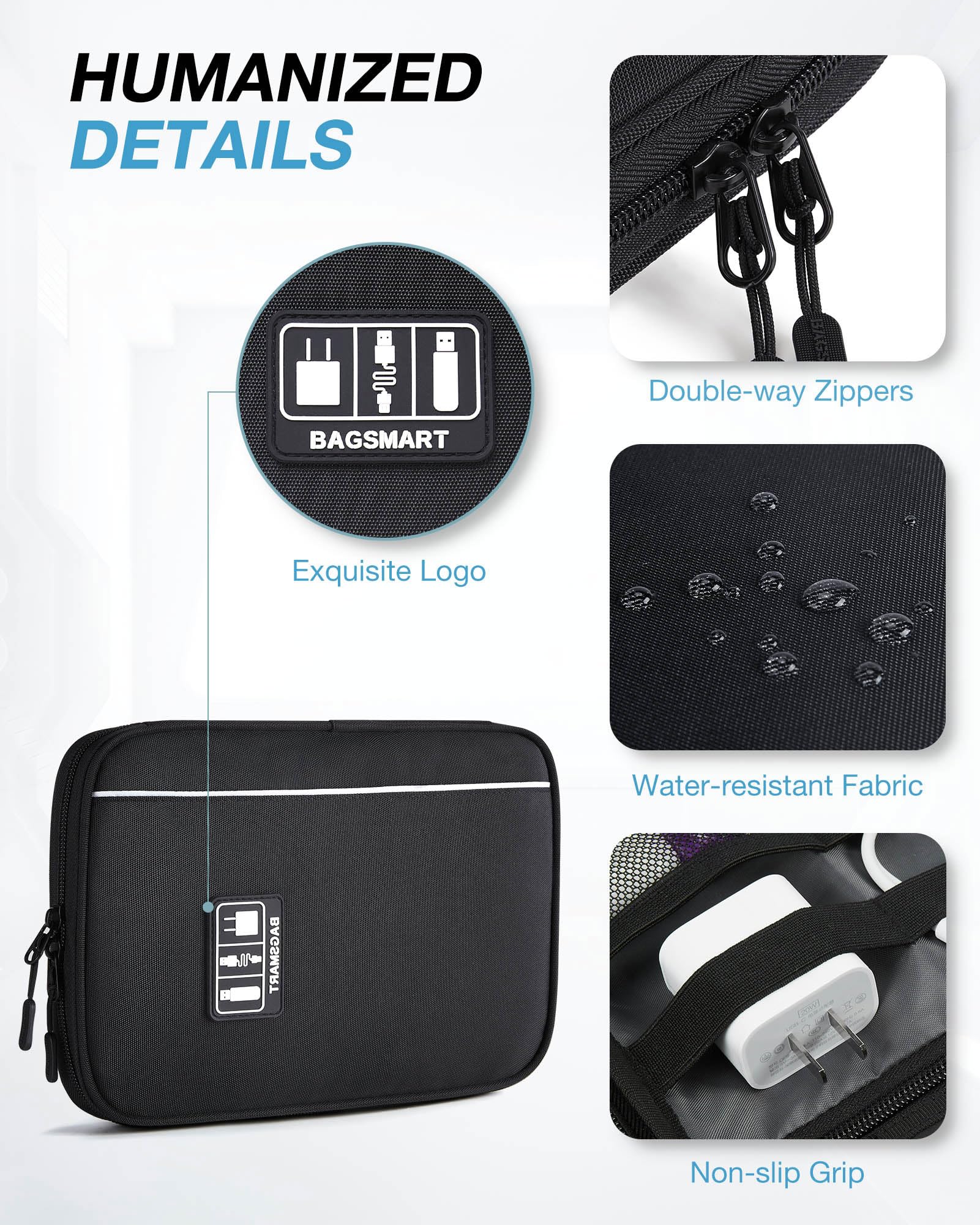 BAGSMART Electronics Travel Organizer Case, Tech Accessories Cord Storage Bag for Phone, Power Bank, SD Card, Cables, Black
