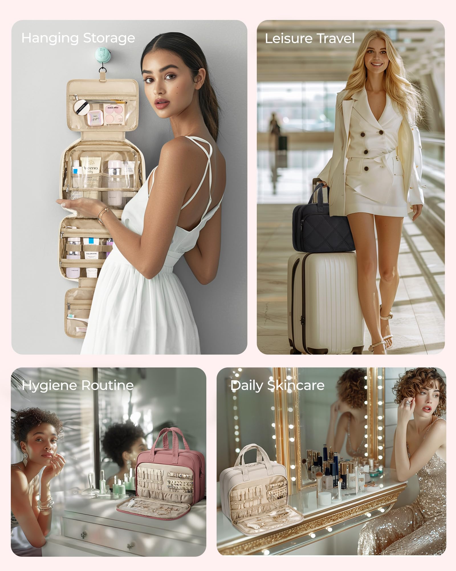 BAGSMART HangingToiletry Bag for Women, Puffy Travel Toiletry Bag with Jewelry Organizer, Waterproof Cosmetic Makeup Bag Compartment, Toiletries Kit Set for Traveling, Accessories, Essentials (Large)