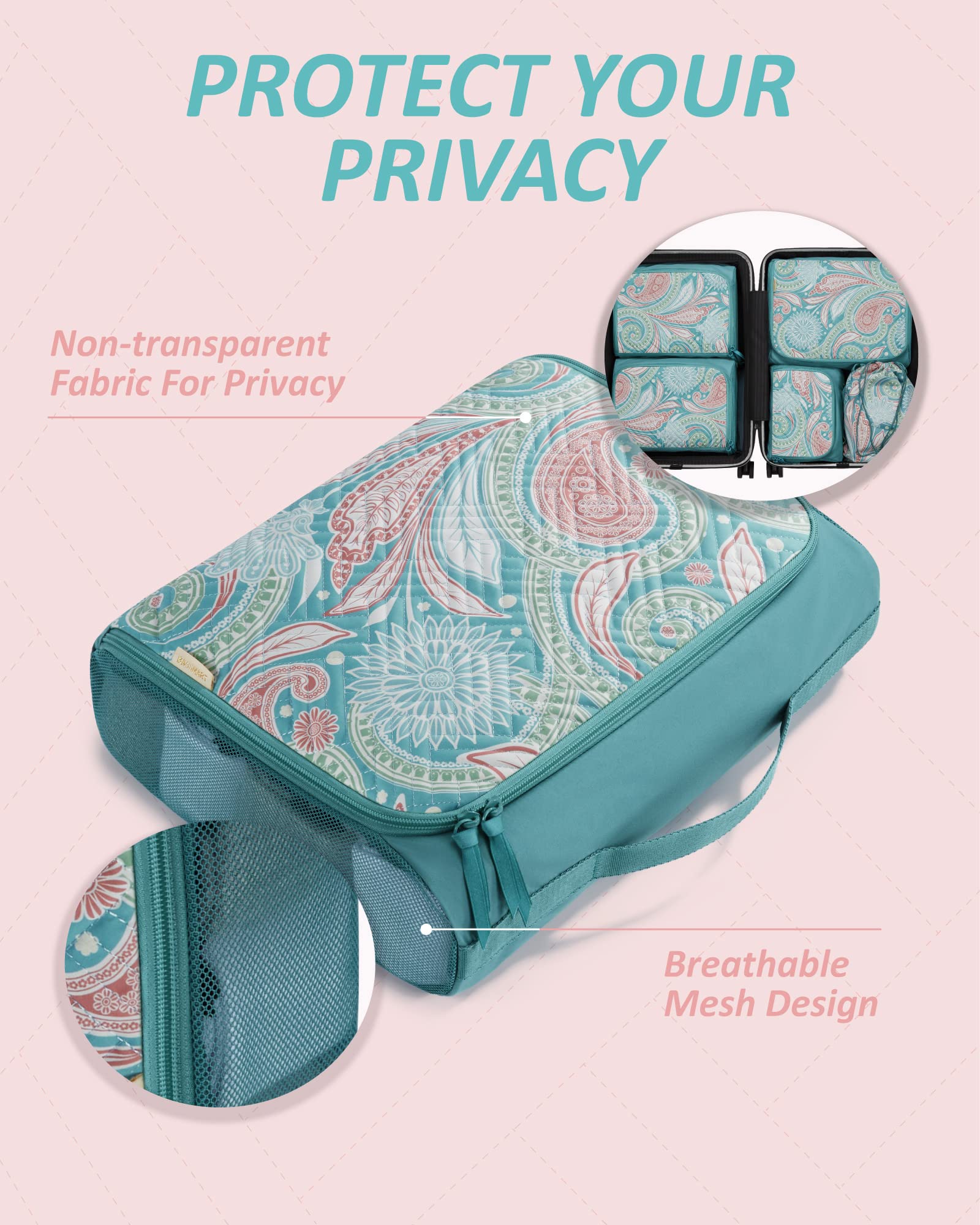 BAGSMART Quilted Packing Cubes for Travel, 6 Set Packing Cubes for Suitcases, Lightweight Travel Cubes (1 L+3 M+1 S+1 Shoe Bag) Suitcases Organizer