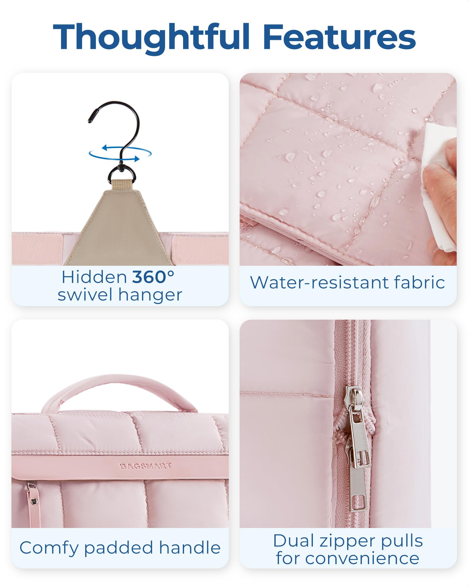 BAGSMART Travel Toiletry Bag, Extra Large Full-open Hanging Toiletry Bag for Women, Puffy Cosmetic Makeup Bag Organizer with Handle for Accessories, Essentials, Toiletries (Black 13''L)