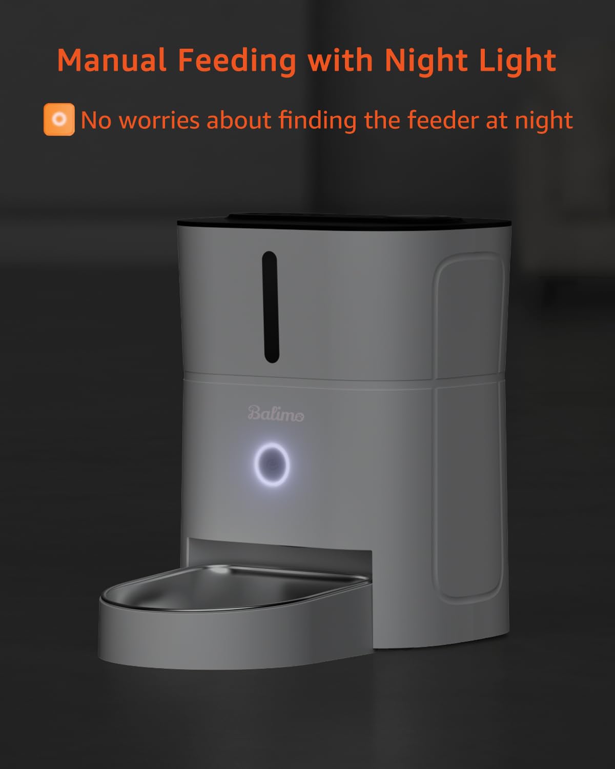 Balimo Automatic Cat Feeder, 3L, Stainless Steel Bowl, 1-6 Meals a Day, White