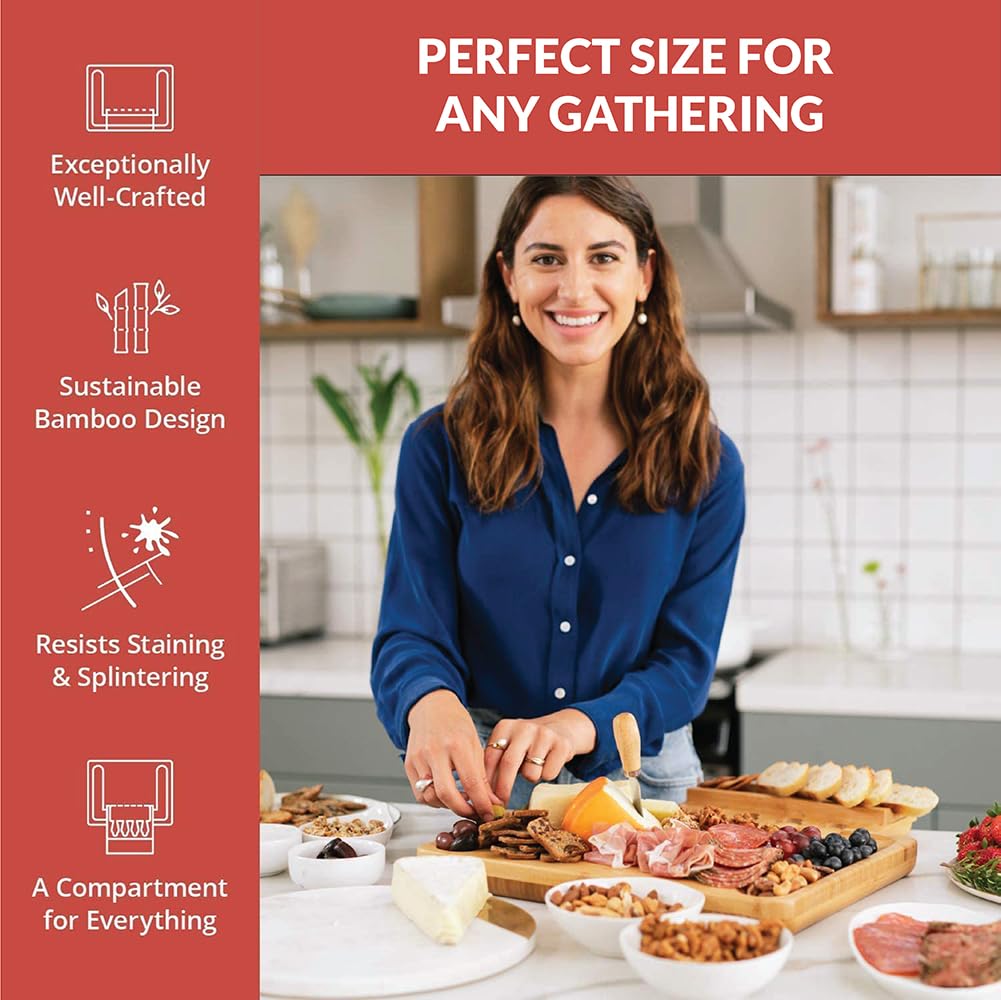 Bamboo Cheese Board and Knife Set - Beautiful Charcuterie Board for Wine, Cheese, and Gifts