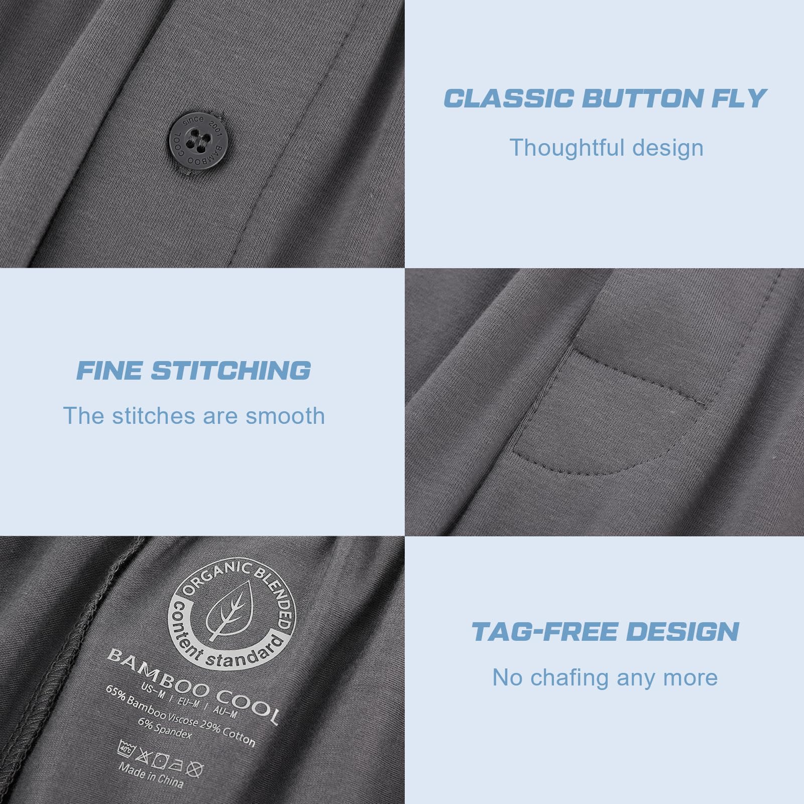 BAMBOO COOL Mens Pajama Pants Sleep Lounge Bottoms Soft Comfy Long Pj Pant Sleepwear with Pockets 2 Pack