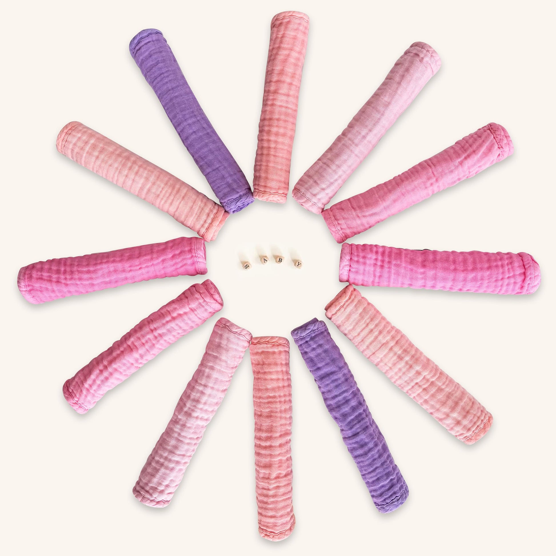 Details: Muslin Burp Cloths, 20x10 Inch, 12 Pack, Pink, Purple, Sakura Series