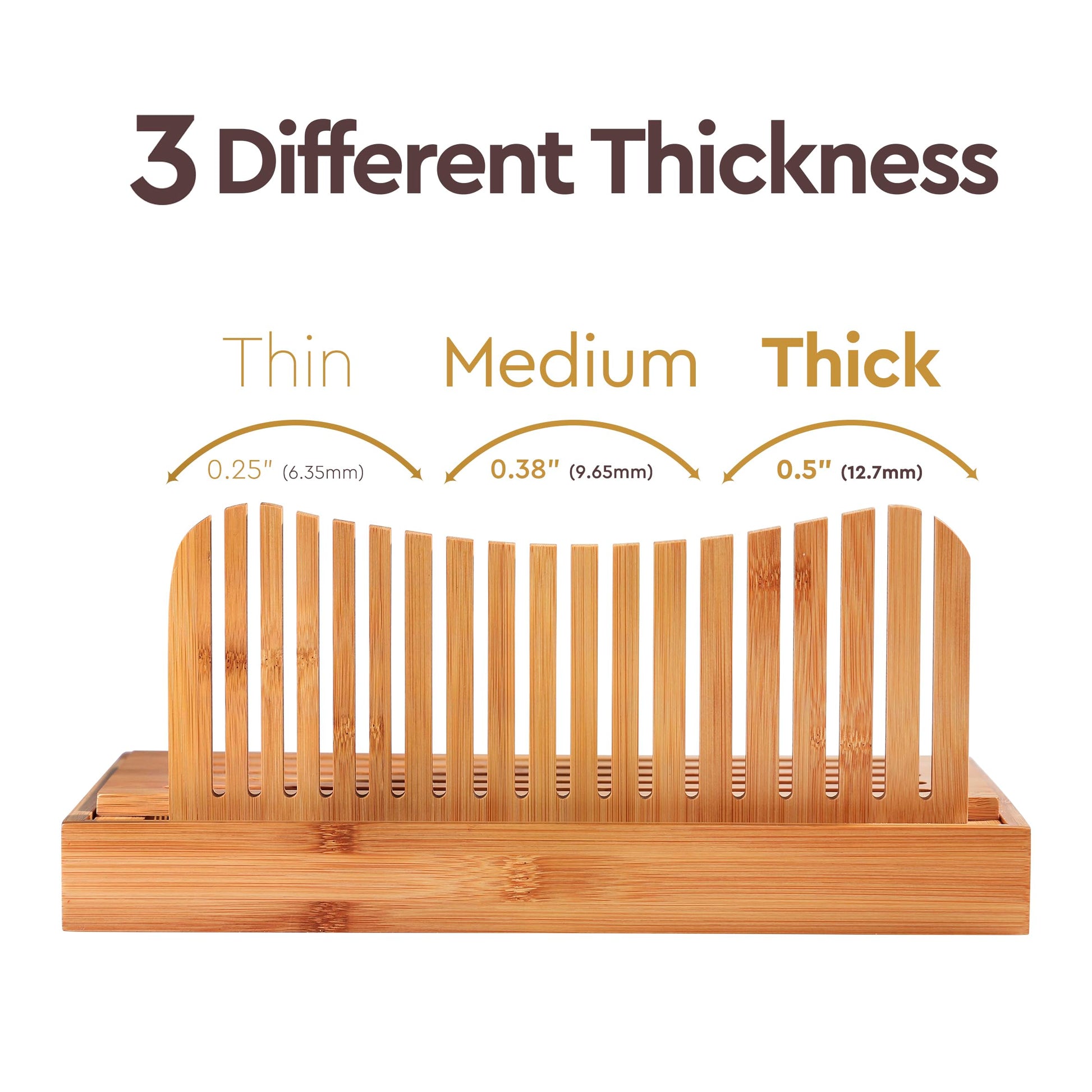 • PRECISE, EVEN SLICES EVERY TIME - Cut homemade bread, artisan loaves, cakes, and bagels evenly with this bamboo bread slicer. The slicing guide ensures uniform thickness for perfect presentation and portion control.
