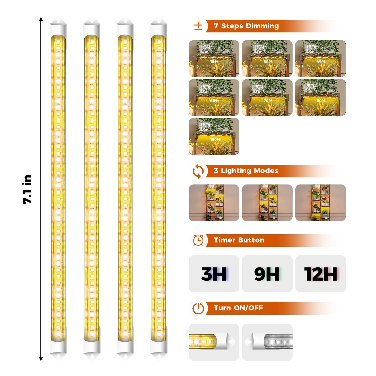• Flower Stand with Grow Light: The plant light contains 3 supplemental light modes: 1. 48 leds warm white(3000k), only 3000k high uniform light ,like sunlight improve seeding growth ; 2. Warm (660nm): promote plant growth , flowering and fruit; 3. Full Warm White (380nm-780nm), Provide universal full spectrum which can meet the light conditions your plants need most in different stages