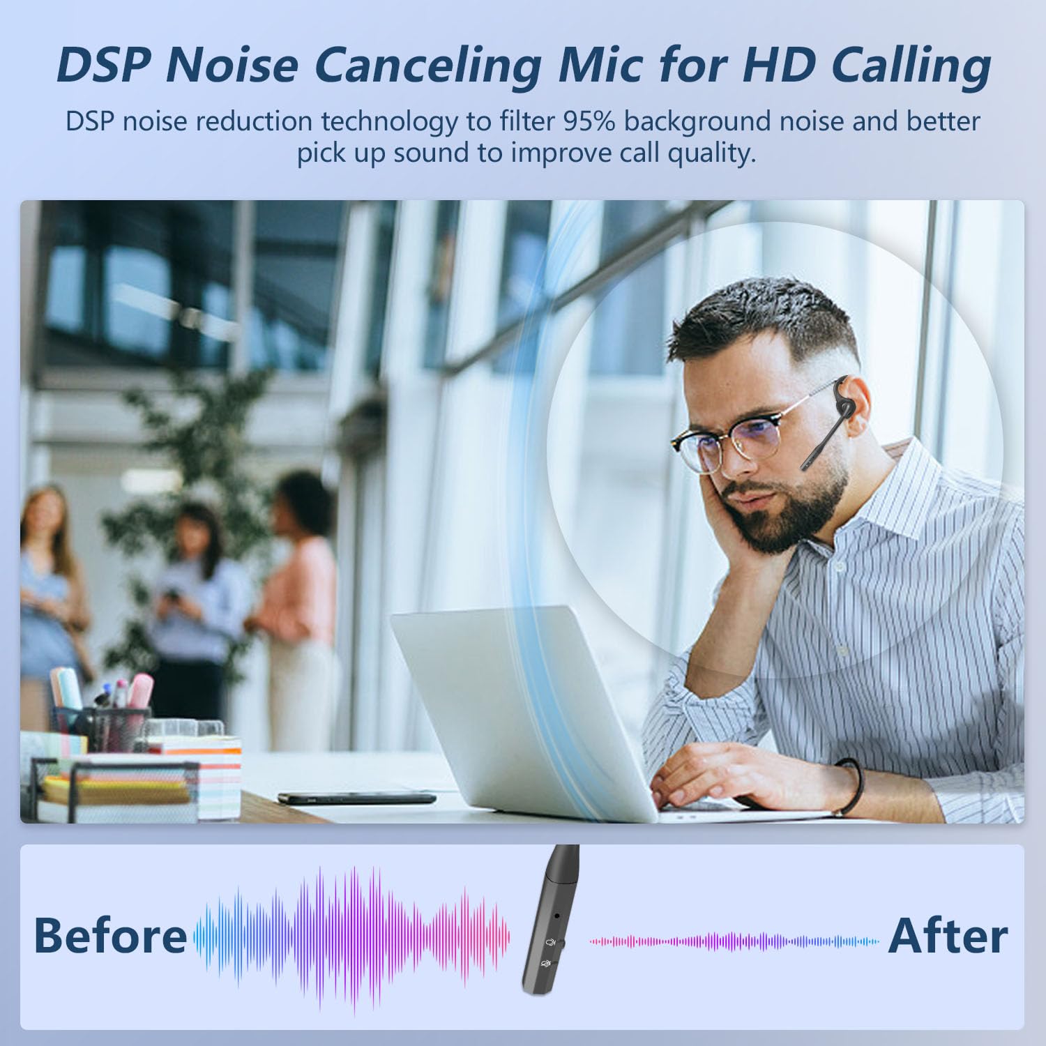 BANIGIPA Bluetooth Headset with Microphone, Open Ear Headphones with Mic, Noise Cancelling Bluetooth Headphones for Phone Computer, Wireless Headset Multipoint Connection & Mute Button for Working-16H