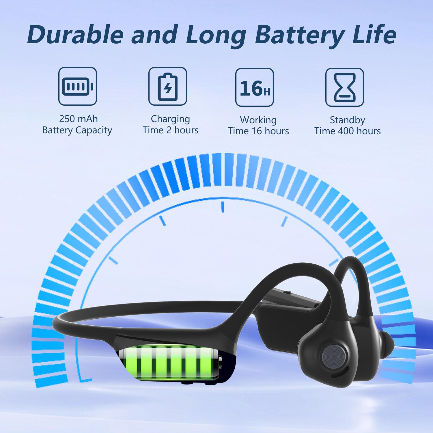 • [Air Conduction Open-Ear Headphones] The Bluetooth headset don't need to plug the headphones into your ears compared to traditional headphones, it keeps your ear canal clean and protects your hearing from eardrum damage caused by wearing ordinary headphones for a long time. Bluetooth headphones not cover your ears, which ensures your ears stay open and fully alert while listening to whatever you want for maximum situational awareness, safety and connection.