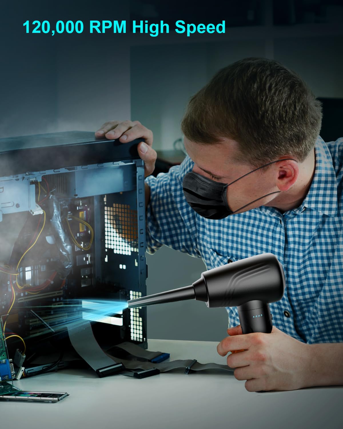 • Eco-Friendly & Wallet-Friendly: Ever counted the cost of disposable compressed air can? Compared to canned air duster for computers, our electronic cordless air duster is the more eco-friendly and wallet-loving. It's reusable and budget-friendly, saving you cash while saving the planet. Win-win! Your wallet and Mother Earth will thank you!
